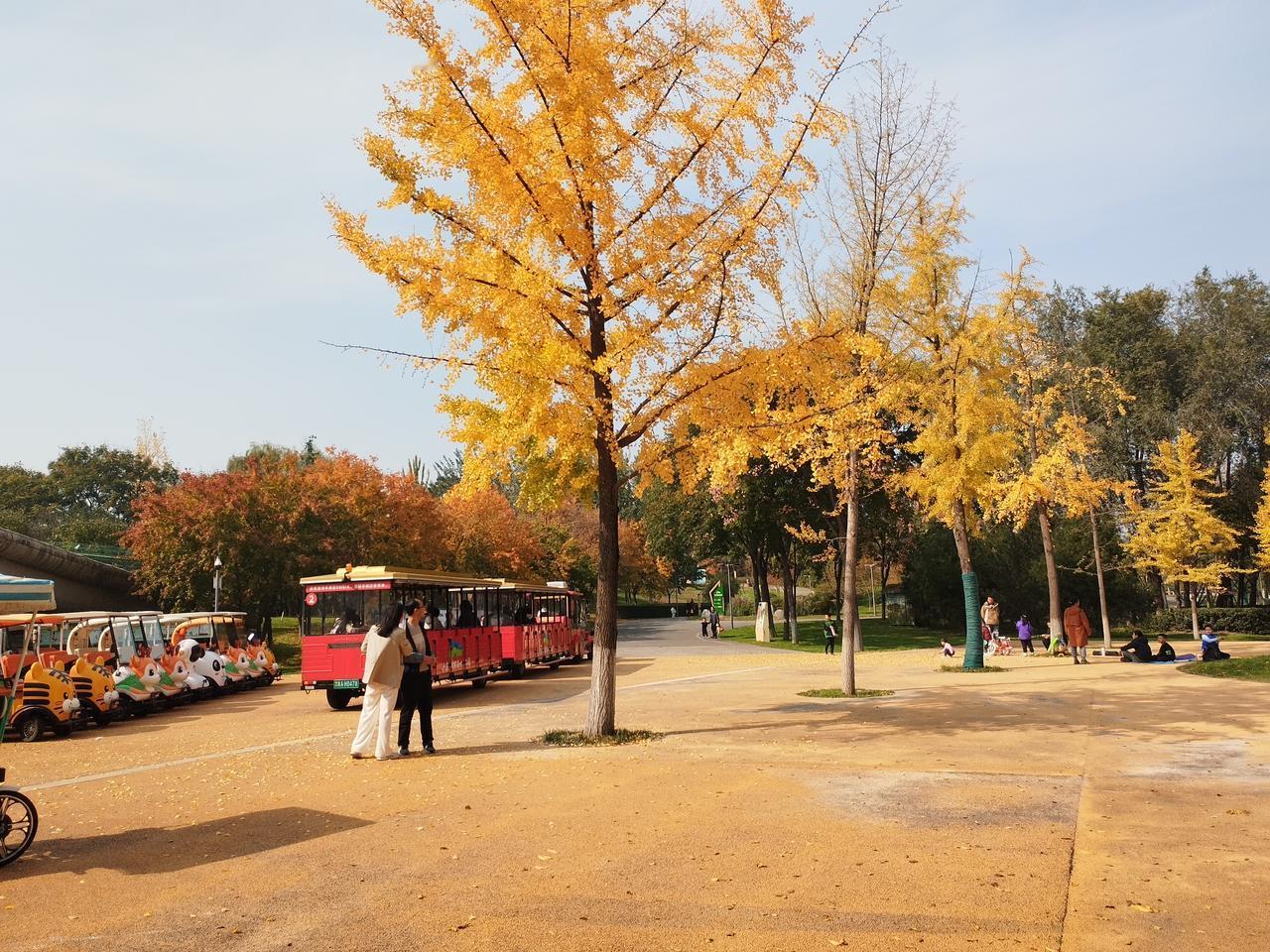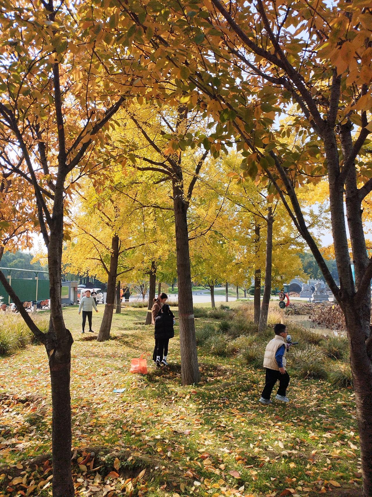 可以分享一张秋景的树叶的照片吗?昨天去浐灞湿地公园拍的,公园很大,处处都有金黄的