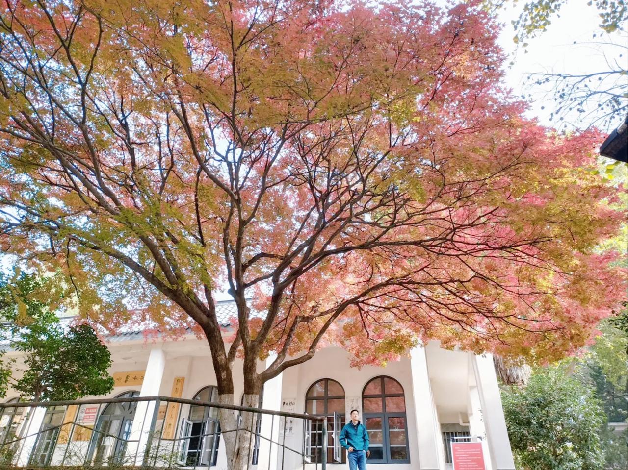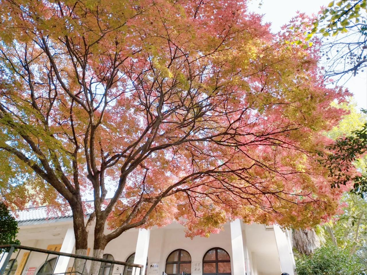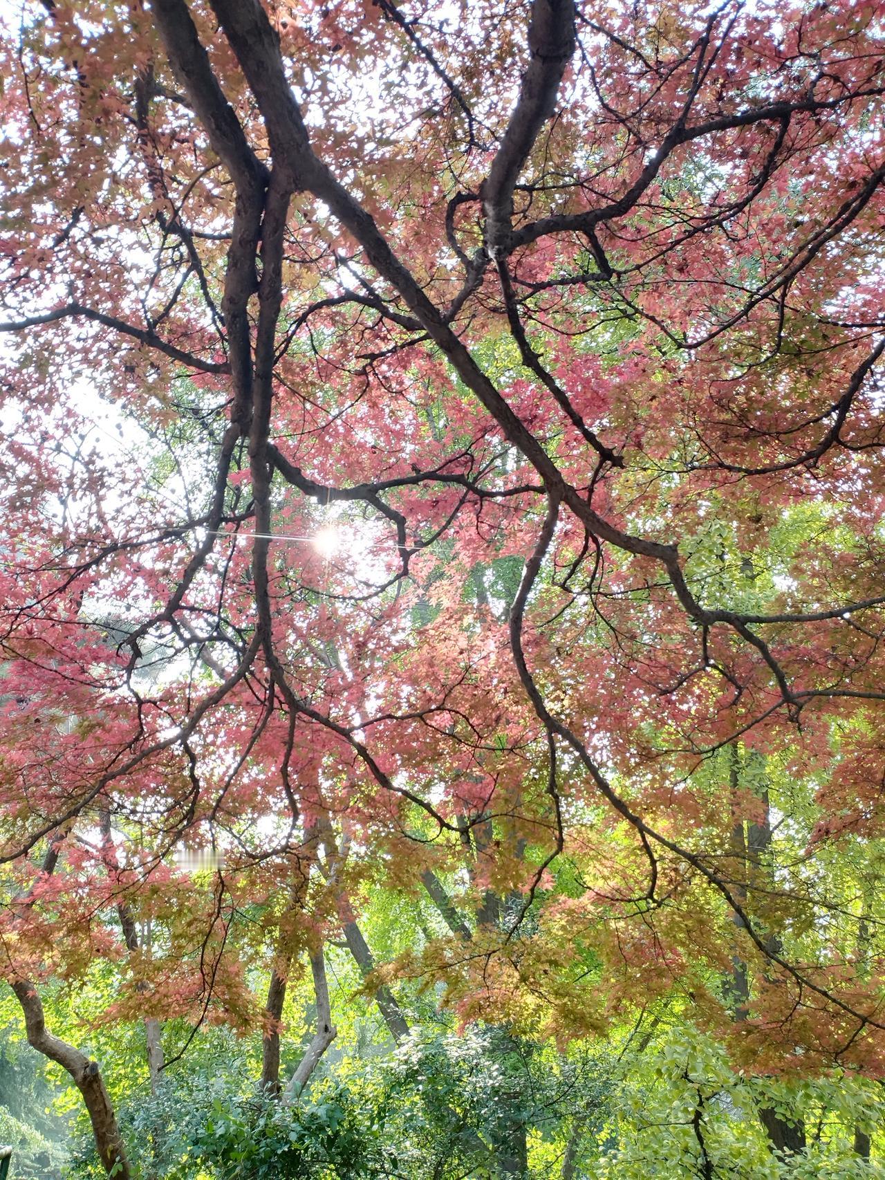 可以分享一张秋景的树叶的照片吗?这是纺织公园里的一棵五角枫,大家都叫它电影树,因