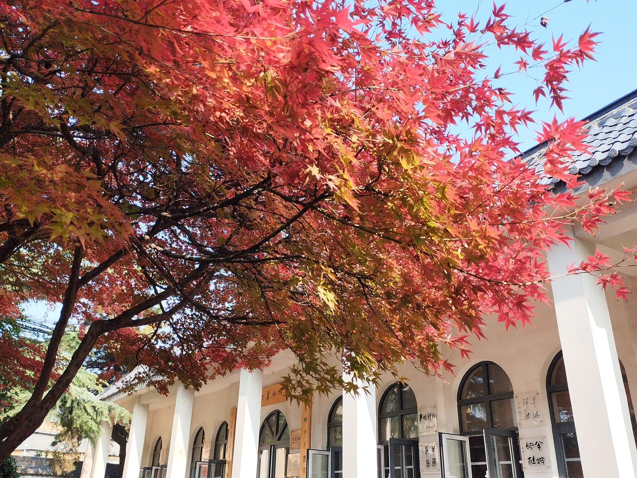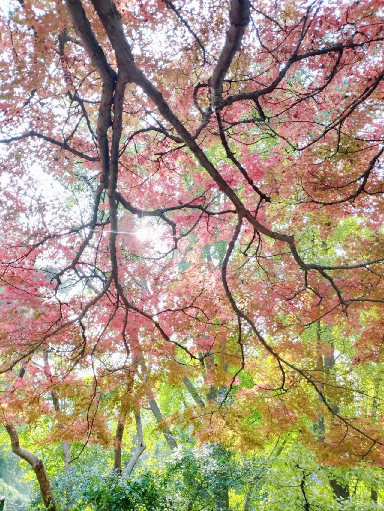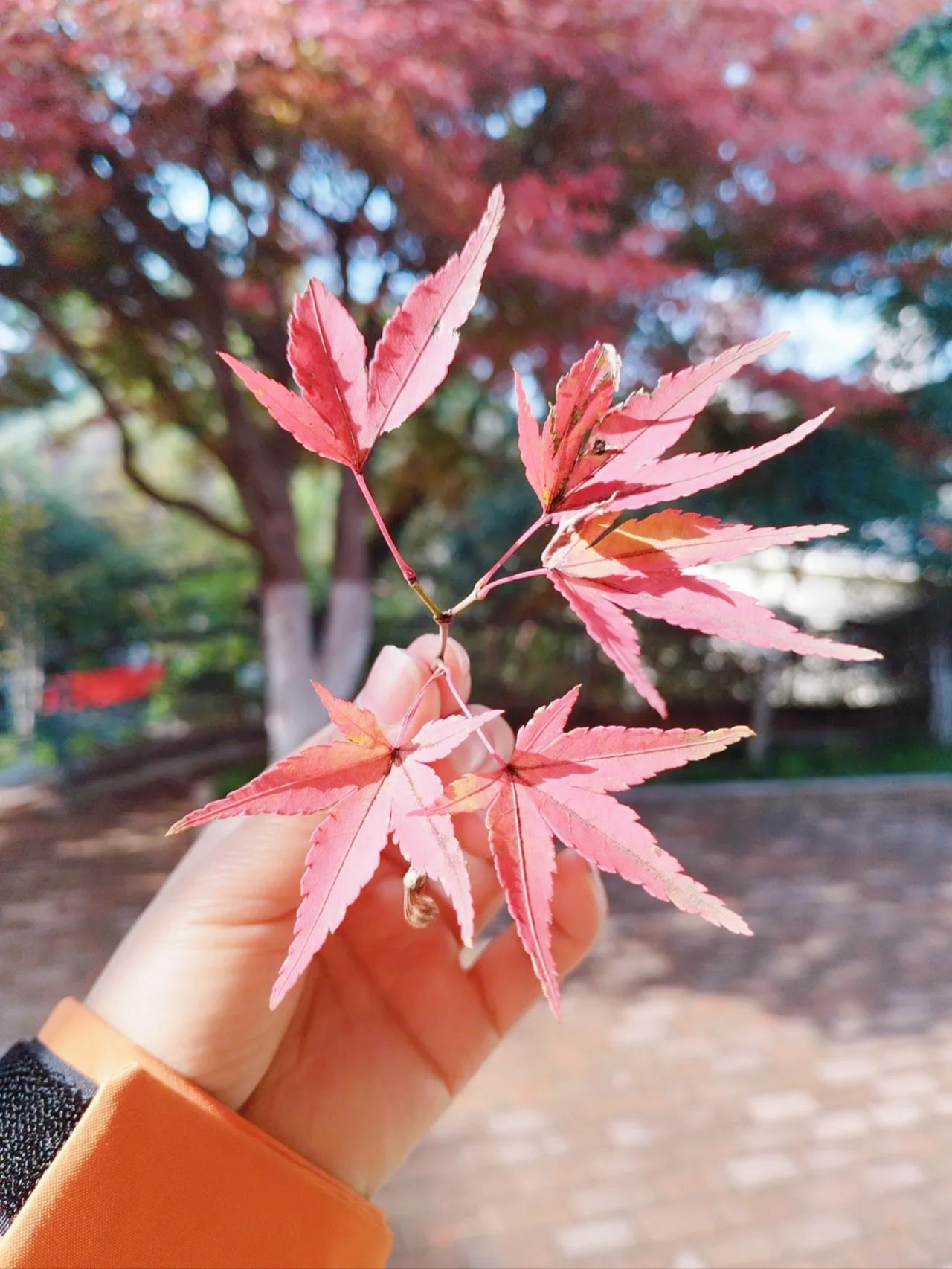 可以分享一张秋景的树叶的照片吗?这是纺织公园里的一棵五角枫,大家都叫它电影树,因为每年当它被秋霜染红了的时候,那种颜色和意境,只有在电影里才有,真的太漂亮了。