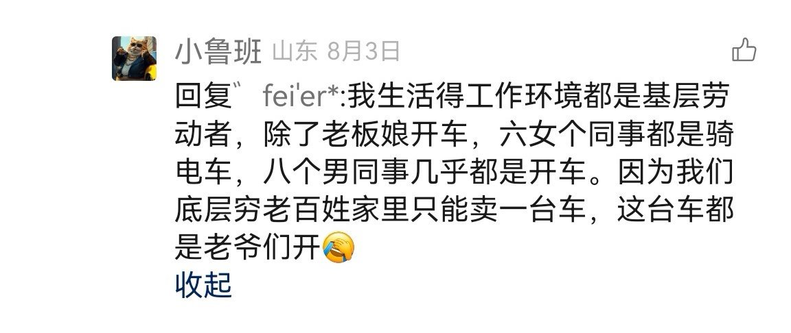 原来山东的已婚女人这么可怜呀,早上要起床做饭,再骑电动车送孩子上学,还要上班,下班再接孩子放学,回家买菜做饭洗衣服,家里唯一的一台汽车给男人开。