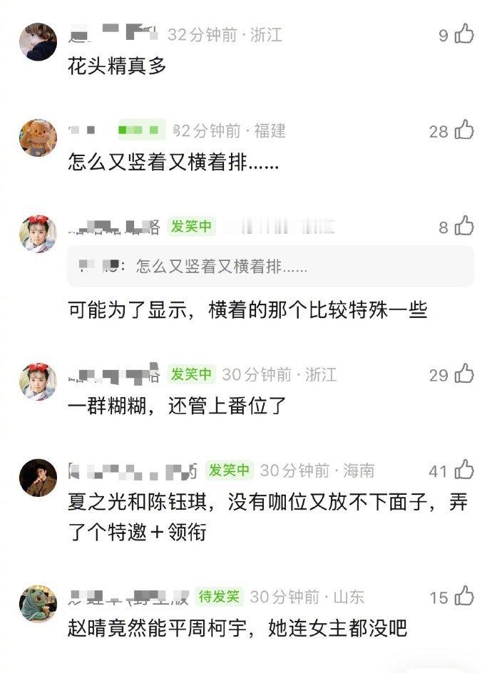 金吾不禁分特邀领衔主演、特邀出演、特别主演,其中陈钰琪的特邀领衔还是横着的,于歪天天说不在意番位结果最爱整这些了