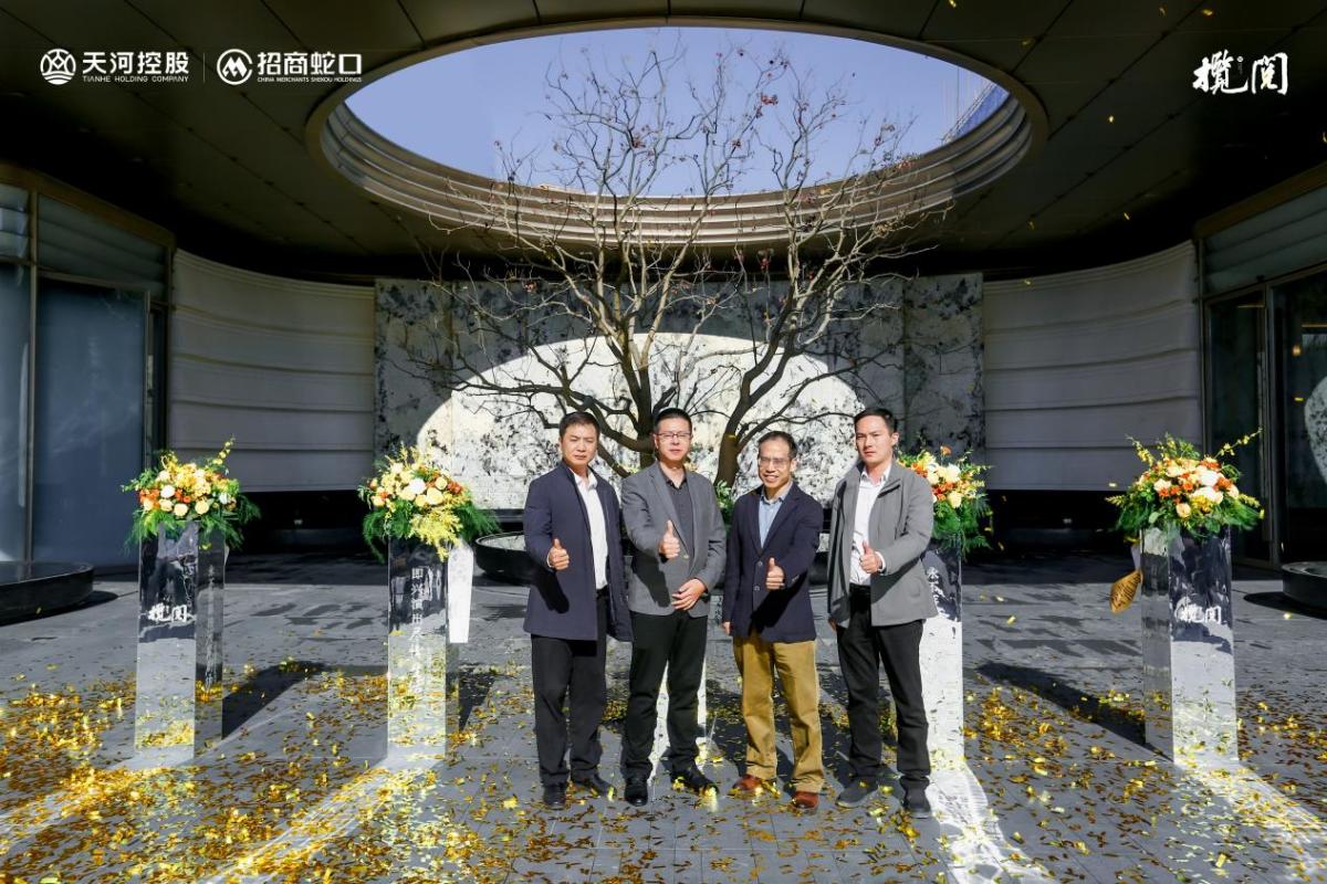 致辞结束后,剪彩仪式如期举行。天河投资集团投资总监朱柏成、招商蛇口郑州公司副总经理李铭、招商蛇口郑州公司总经理助理何小刚、天河投资集团地产事业部部长左殿勇共同执剪,为招商·揽阅的全新征程剪彩喝彩。