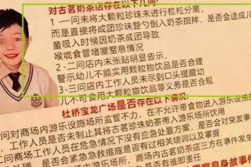 店家回应男童喝珍珠奶茶窒息身亡,安全意识薄弱,维权意识很强。4岁男童,玩蹦床,奶茶珍珠卡喉窒息死亡,父母向奶茶店和蹦床乐园索赔。一场悲剧。知道为什么美国商界喜欢照抄肯德基的安全提醒目录?因为肯德基是被告怕了,只要一个没有提示没到位,顾客出了事就有连带法律责任,多少得赔付一点。曾经美国还有华人餐厅好心提供牙签,结果导致剔牙出血,结果被告到破产…