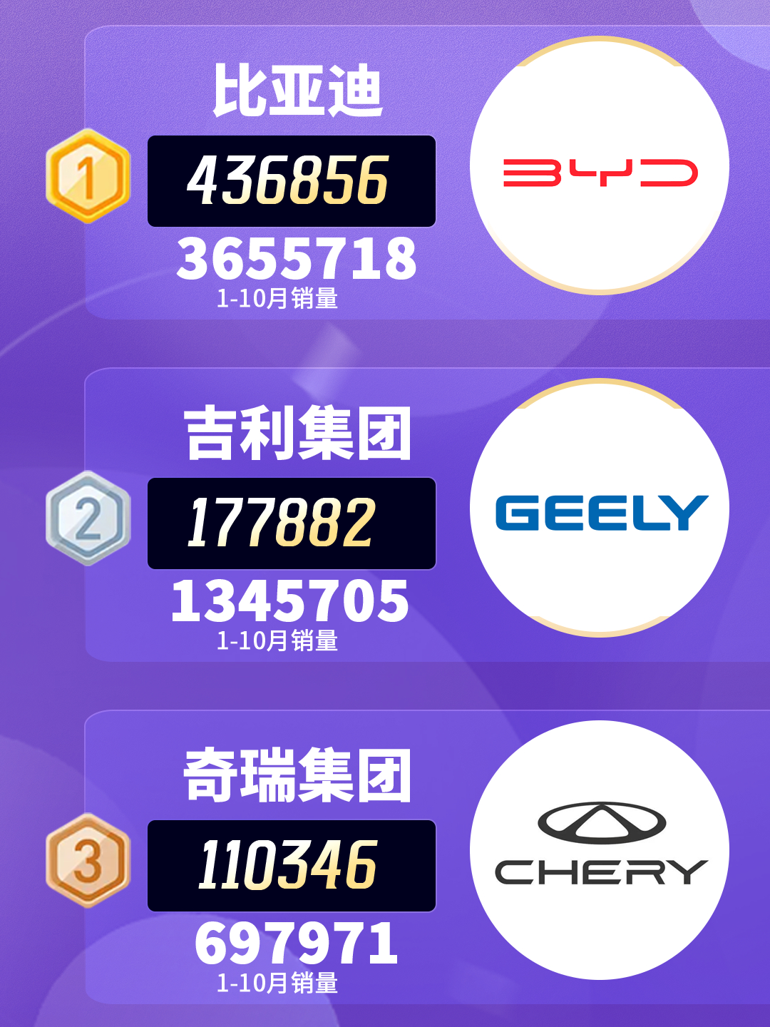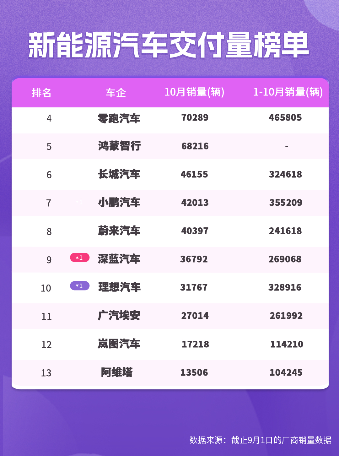 10月销量整体向上,只有理想往下掉,看明年L系列的大改款能否挽回颓势