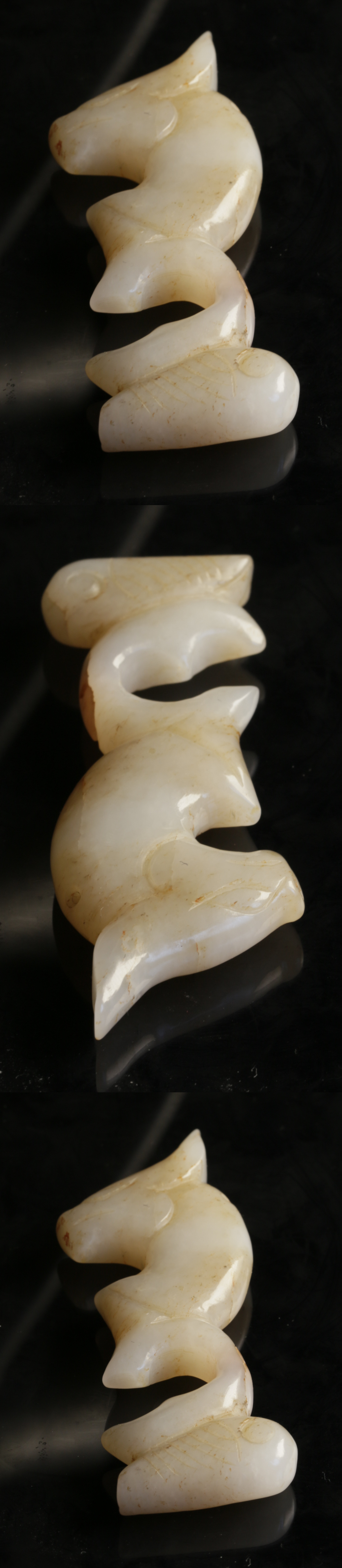 此类的红山文化“红山文化. 白玉浮雕蝉纹龙型佩”玉雕,珍贵而罕见。是不可多得的精品,具有极高的收藏价值。