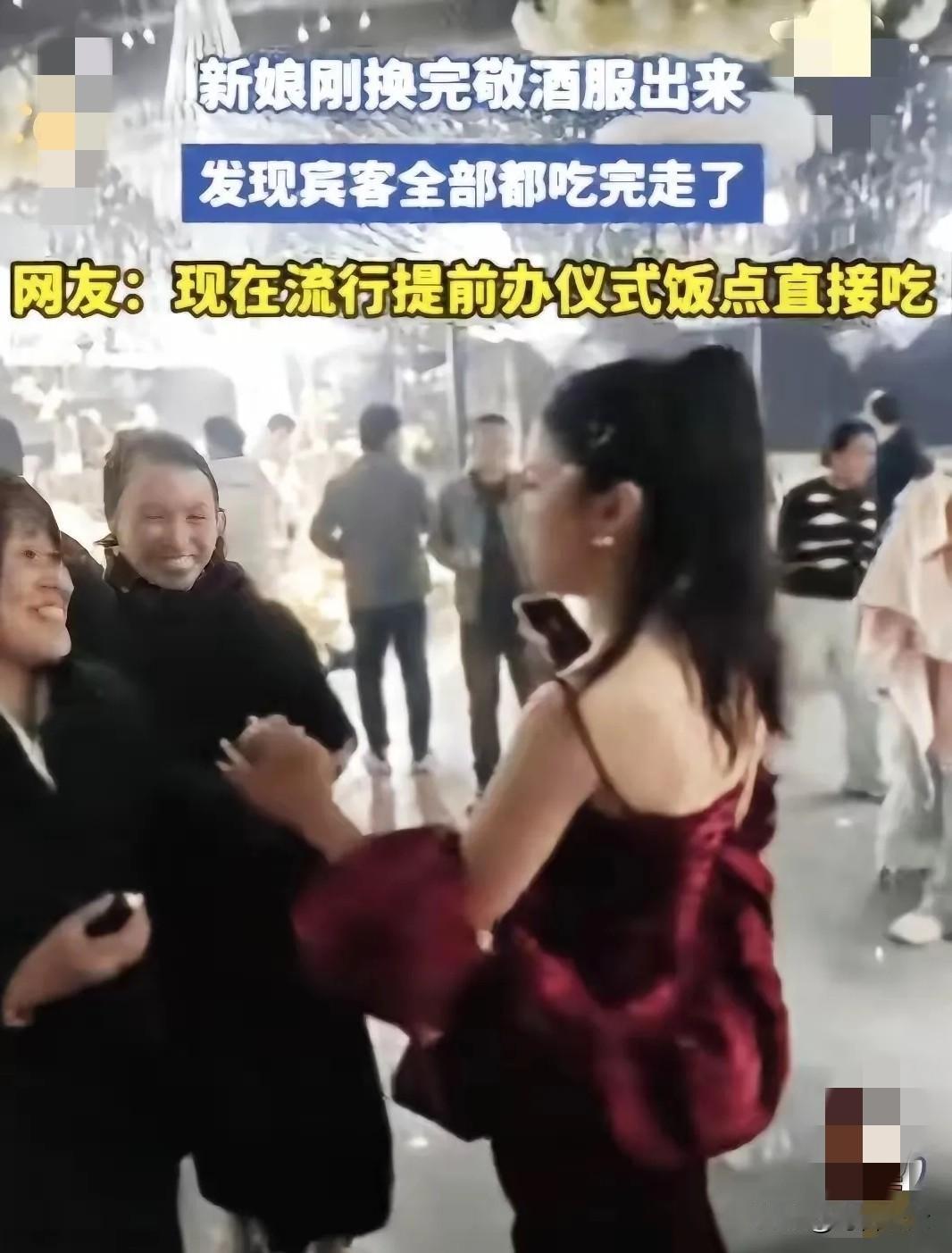 看到一个新闻,贵州遵义一对新人的婚宴,22桌宾客集体走光,新娘都要哭了。真不是人家不懂事,是新娘这边太不拿客人当回事。 想办个体面婚礼、要仪式感没错,大家都能理解,可仪式感是给俩新人留回忆,不是让一屋子人饿着肚子陪你耗时间。 新娘这边换第三套礼服时,台上的喜糖盒早被小孩翻乱了,圆桌上的清蒸鱼凉得泛白,隔壁桌的大叔揉着肚子跟老伴说“我早上六点就来帮忙了。 到现在就吃了俩包子”;年轻人更直接,掏出手机刷得屏幕发亮,有人小声吐槽“本来想给孩子包个红包沾喜气,结果等得我都饿了”。 等新娘终于踩着蕾丝鞋出来,好多桌已经空了,服务员正端着没动几筷的菜往回收,她手里的喜酒还没敬出去,先红了眼睛——可她没看见。 楼下张姨攥着给她买的红袜子,站在楼梯口叹气,说“这闺女光顾着自己漂亮,咋忘了客人是来吃喜酒的?” 其实婚礼的“体面”从来不是看新人折腾多久的妆,是桌上永远有热汤,是宾客笑着跟你碰杯。 是你知道有人愿意花时间陪你完成这个仪式。把宾客晾在一边,再华丽的婚纱,也捂不热空了的椅子。 各位读者你们怎么看?欢迎在评论区讨论。