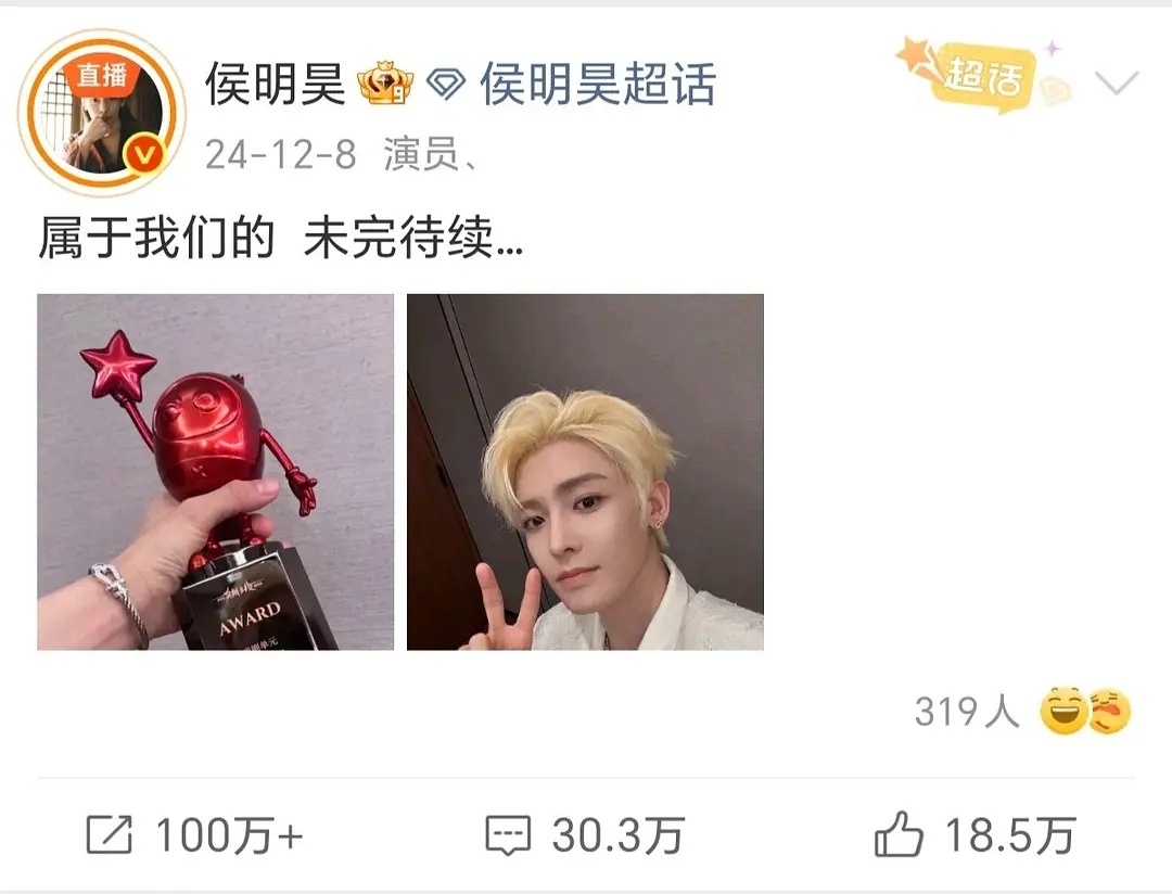 侯明昊,真的是很事业型,很爱粉丝的一款