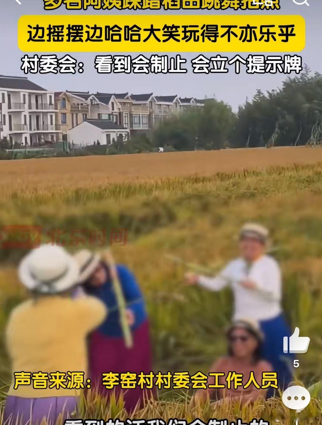 这几位阿姨一看就是生活得非常好的城市人,只顾自己开心,不懂农民们种地的辛苦,为了跳舞拍照就踩踏稻田,农民看了真的很心痛💔希望这些稻田能得到赔偿