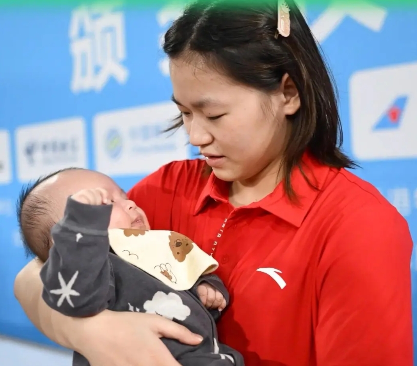 谢思埸的老婆和宝宝都到比赛现场观赛了,全红婵还帮谢思埸带娃,婵妹真的好可爱。