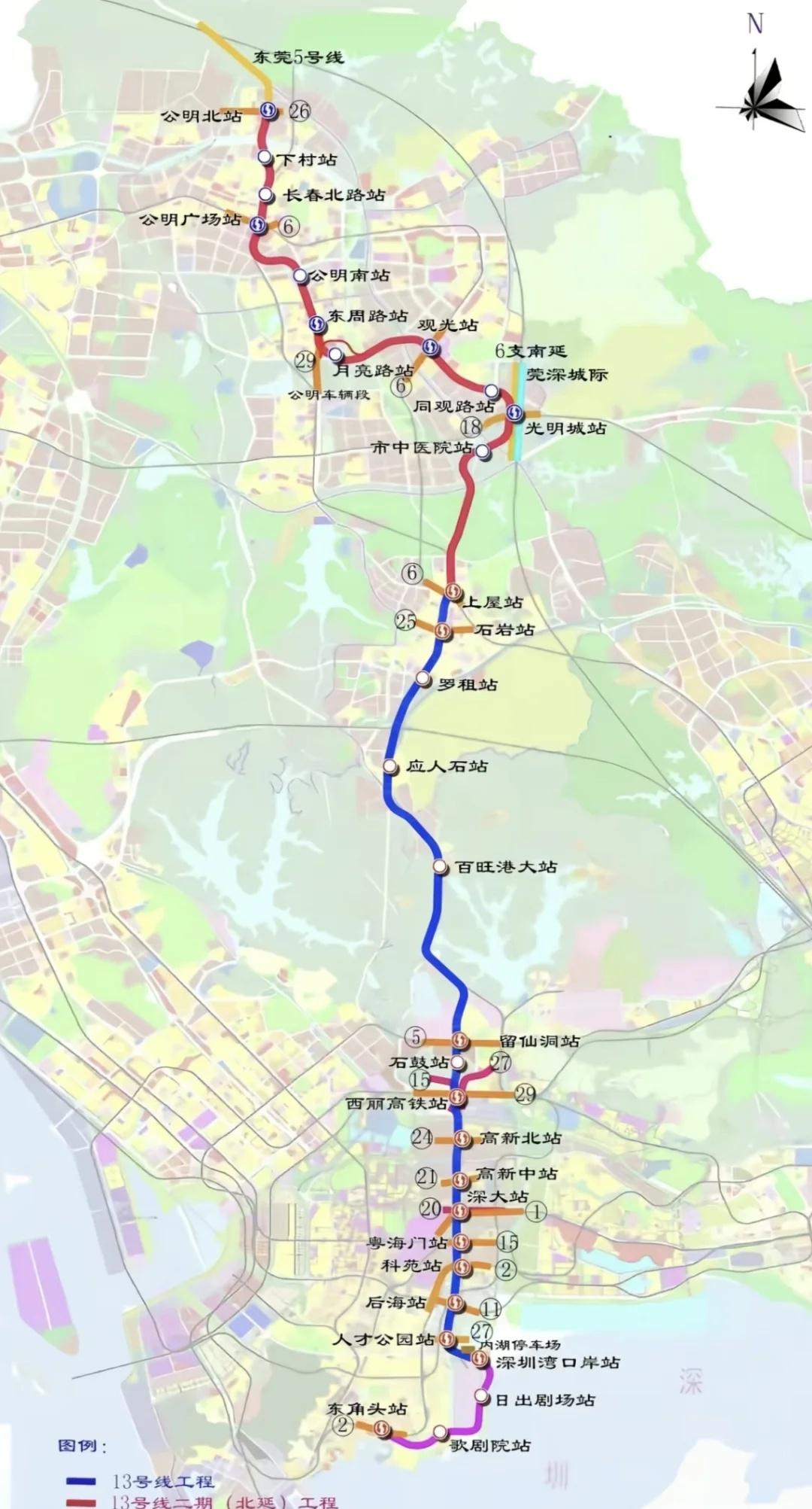 深圳港铁13号线一期北延终于来了 据深圳港铁13号线爆料,13号线一期北延全部站