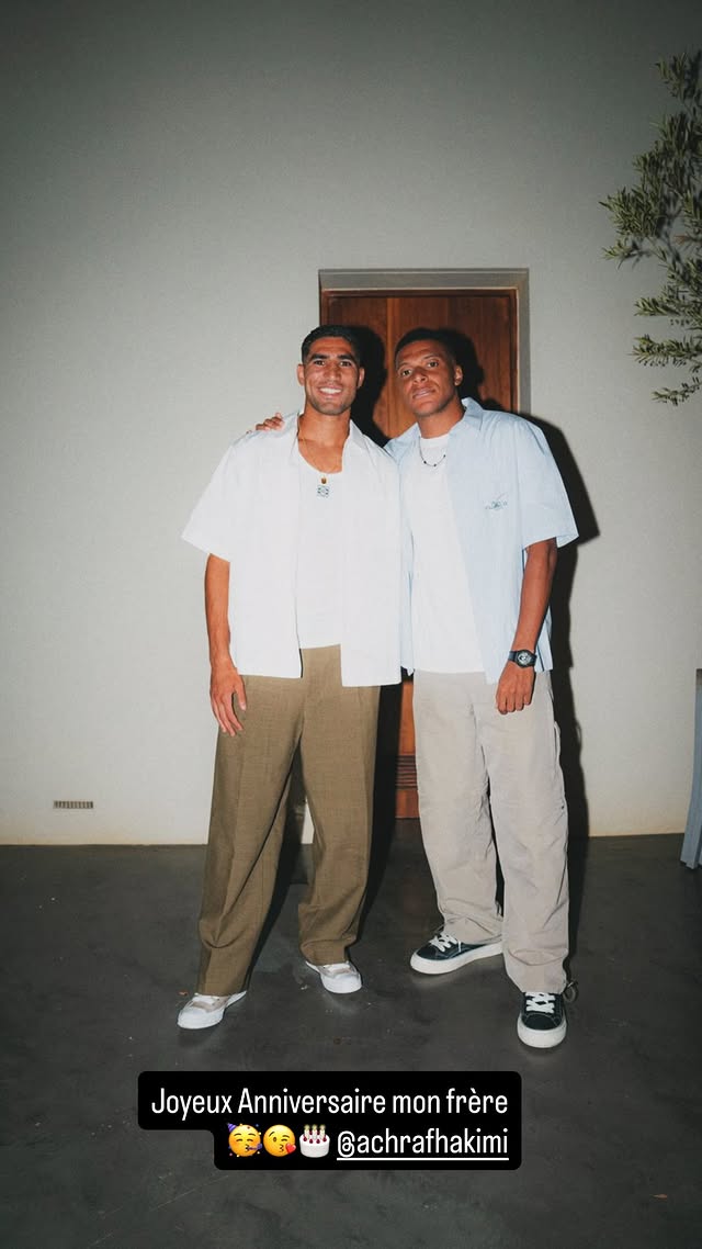 姆巴佩在Ins中发布了两人的合影:祝我的兄弟生日快乐@阿什拉夫