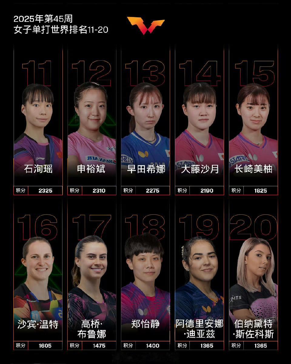 国际乒联第45周女单世界排名! 2025WTT蒙彼利埃冠军赛刚刚结束,由此产生的