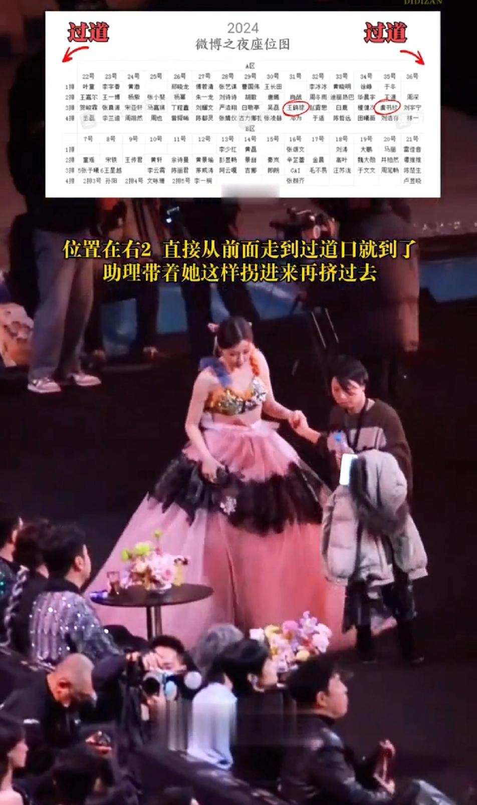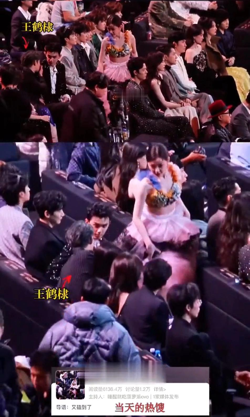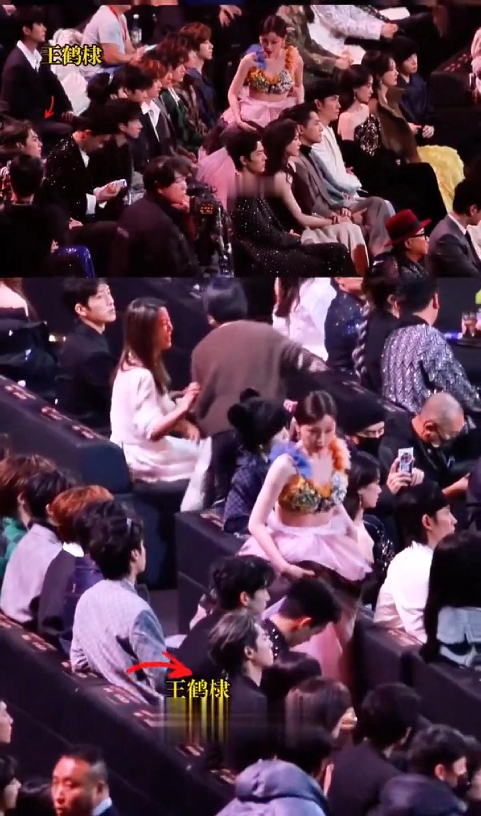 感觉王鹤棣又内涵了虞书欣,王鹤棣看到自己那排的座位都坐满了人,于是,他选择了从后面一排过去,然后一腿迈到自己的座位上,整个过程用时不到十几秒,而且只打扰到了邓恩熙,王鹤棣真的很机灵也很贴心~问题是一看到王鹤棣这操作很难不想到虞书欣去年微博之夜的操作,明明另一头就是过道,虞书欣非要穿着笨重的裙子打扰一整排的人坐到自己的座位上,都说她这操作是为了蹭王鹤棣一个热搜,并且还真的被她蹭到了,问题是感觉王鹤棣在虞书欣走到她身边的时候有故意和吴磊讲话不搭理他,为什么最后整出来一个“棣欣引力”对视的热搜~~王鹤棣