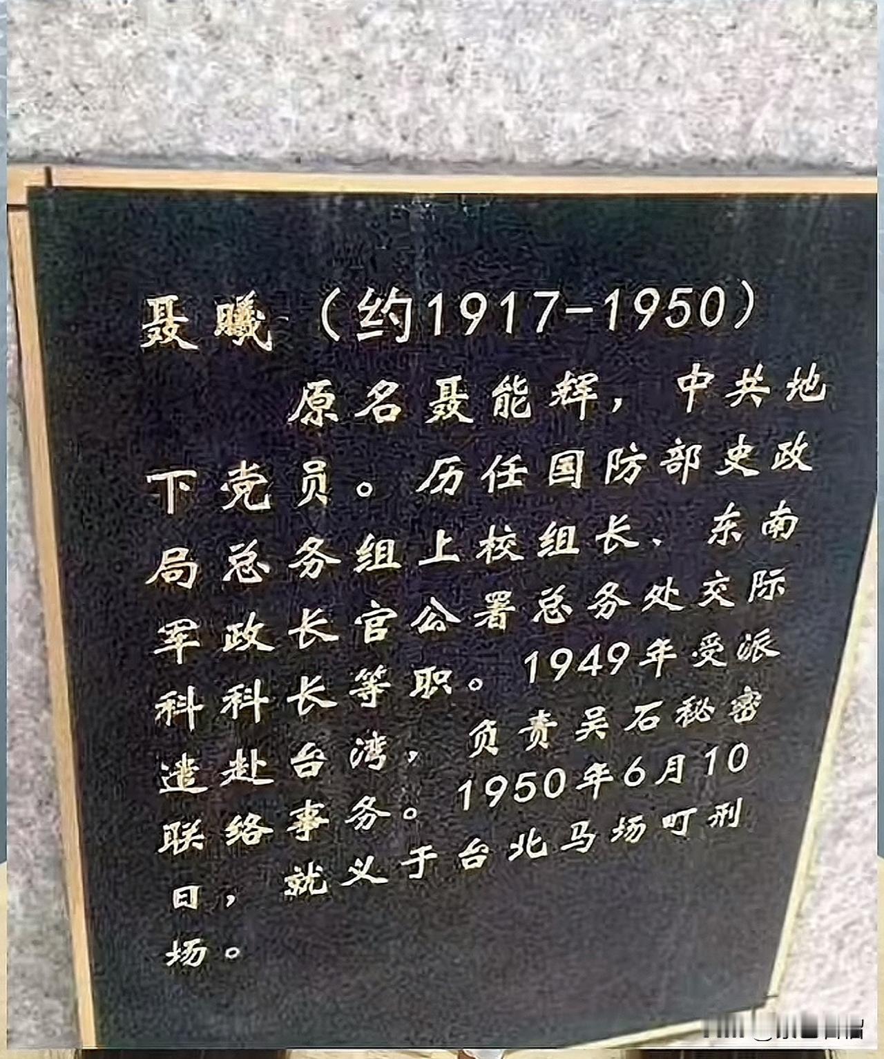 据公开资料显示,聂曦原名聂能辉,1917年出生于福建福州,早年投身革命,后以“聂曦”之名开展革命工作。 聂曦赴台湾时,并非独自前往,而是携妻子高秀娟以及生于1945年的女儿聂凯声一同前往。1950年6月10日,聂曦英勇就义。6月14日,因高秀娟患病,无法前往台北为聂曦料理后事,便委托聂曦表妹杨韵清代为领回聂曦遗体,火化后寄存于台北一家公墓。 11月3日,在台湾的安徽远山兄弟以及台湾政治受难者互助会的同志寻得聂曦烈士的相关信息,了解到烈士有后人,即聂凯謦和弟弟聂尚骥(淡江大学教授),其后代每年都会前往祭拜聂曦烈士。 相信不久的将来,待台湾解放之日,祖国定会派专机将烈士遗骨接回大陆,以高规格迎接,并将其葬入烈士陵园,供后人凭吊。我们翘首期盼那一天的到来。 (图片来源网络)