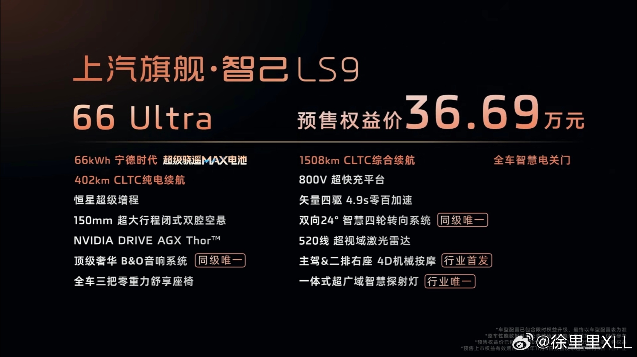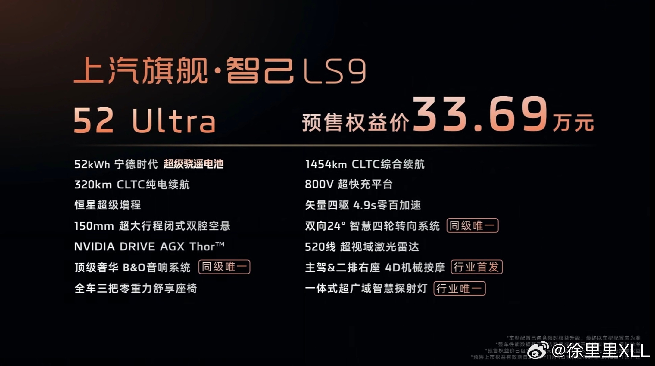 智己LS9看起来跟LS6一样很超纲。标配15厘米行程的双腔闭式空悬。标配24度的