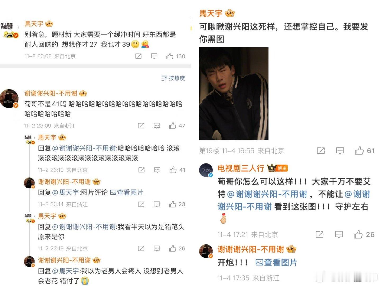马天宇谢兴阳从戏里打到戏外 马天宇和谢兴阳这波互动太圈粉了!戏里张力十足,戏外互坑不停,互相吐槽还带着熟稔的默契,活人感已经从屏幕里溢出来了!