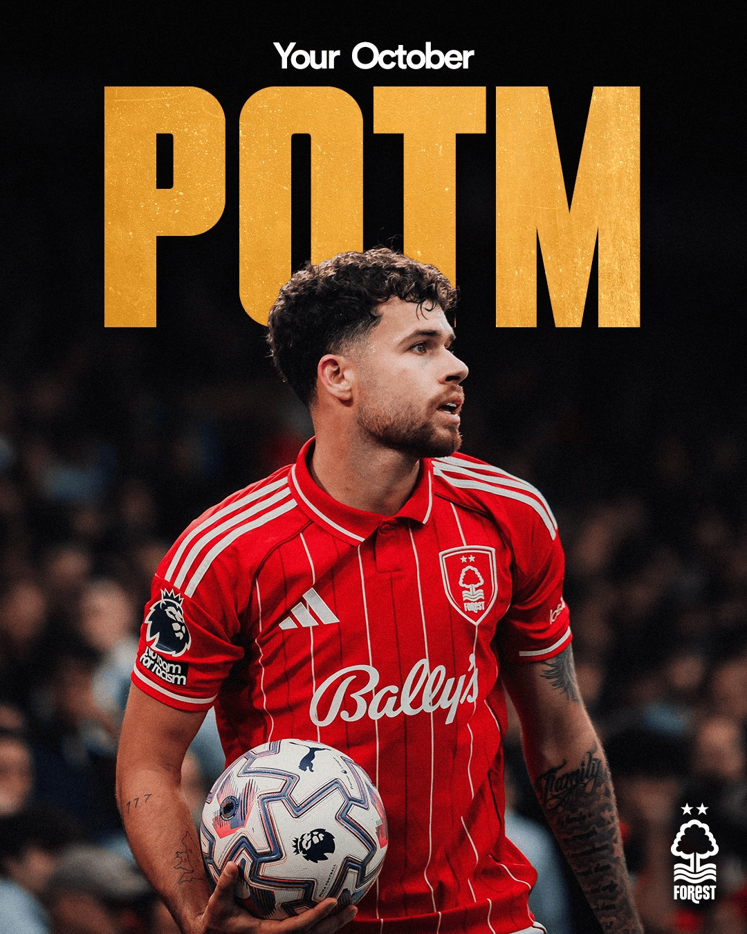 官方:威尔士左后卫内科-威廉斯当选森林10月最佳球员