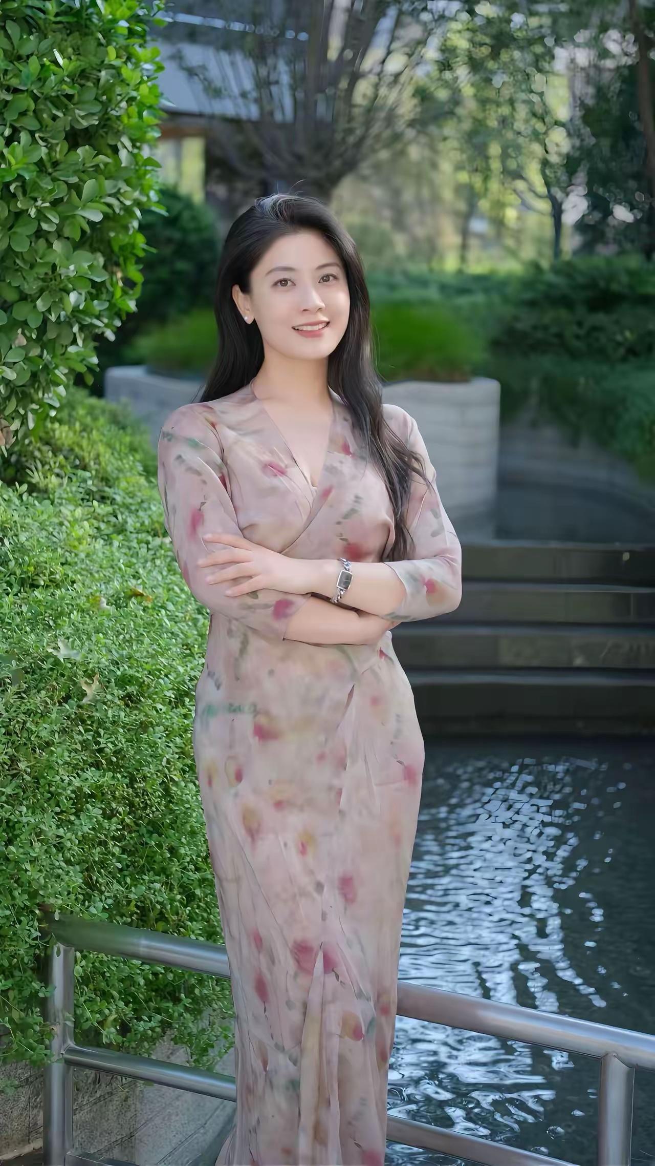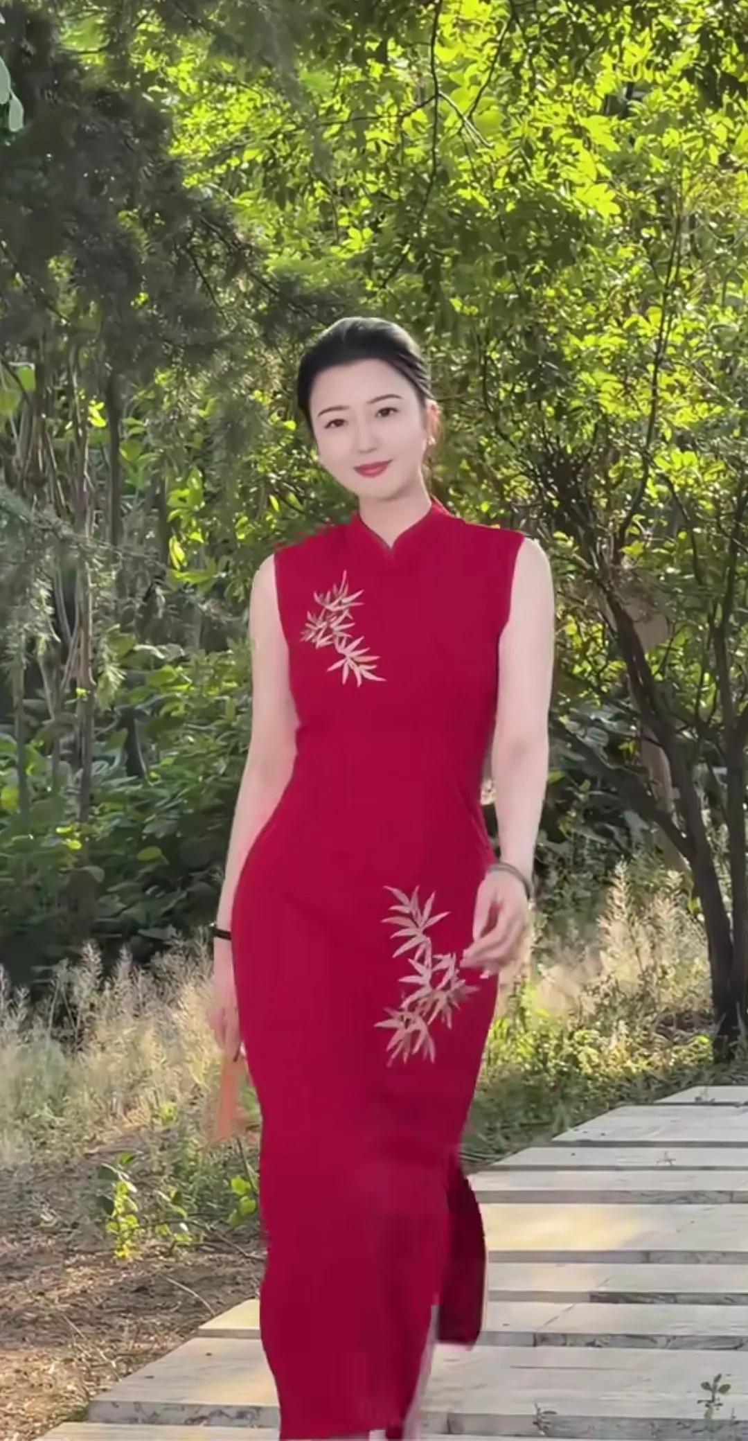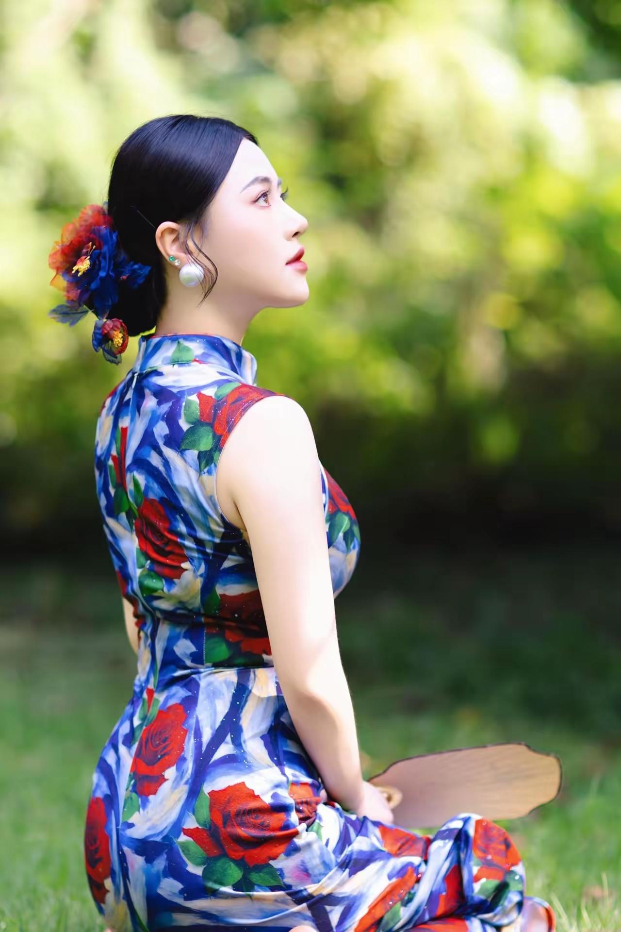 她于江南烟云里轻拢绿纱, 似从敦煌壁画里走出来的飞天。 岁月在多彩的旗袍上跳着碎金的舞, 轻盈的细步踏出朦胧的幻影, 与耳间的翠玉流苏一同婀娜。 转身后, 背胛那片树叶与身影相融, 恍若仙子下凡, 在这古老与现代交织的时光里, 等一场跨越千年的相逢, 每一寸肌理都浸着东方的韵, 每一次抬眸都藏着诗意的留白, 似在说, 原来你也在这里, 共赏这人世间的旧梦新篇。