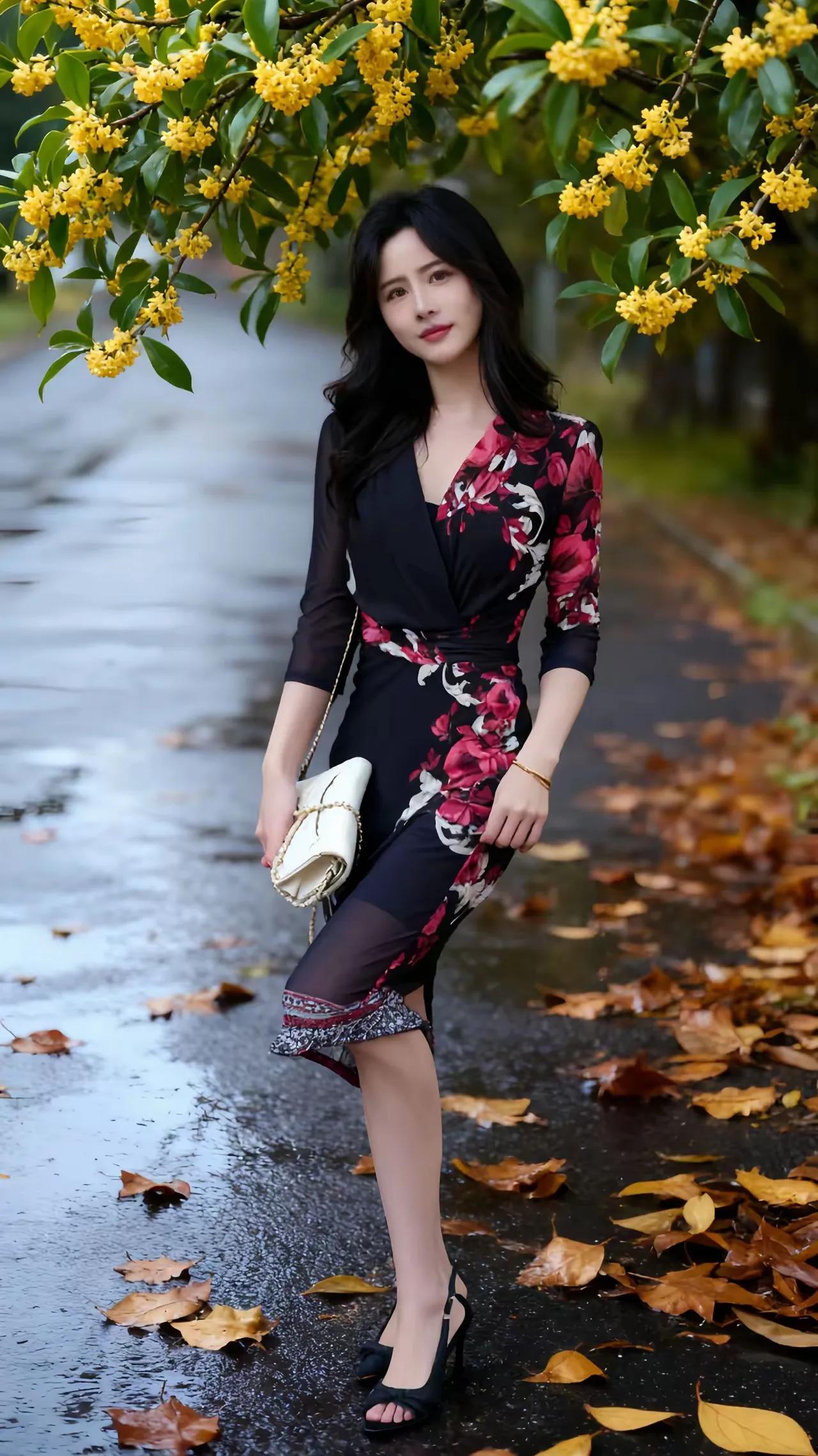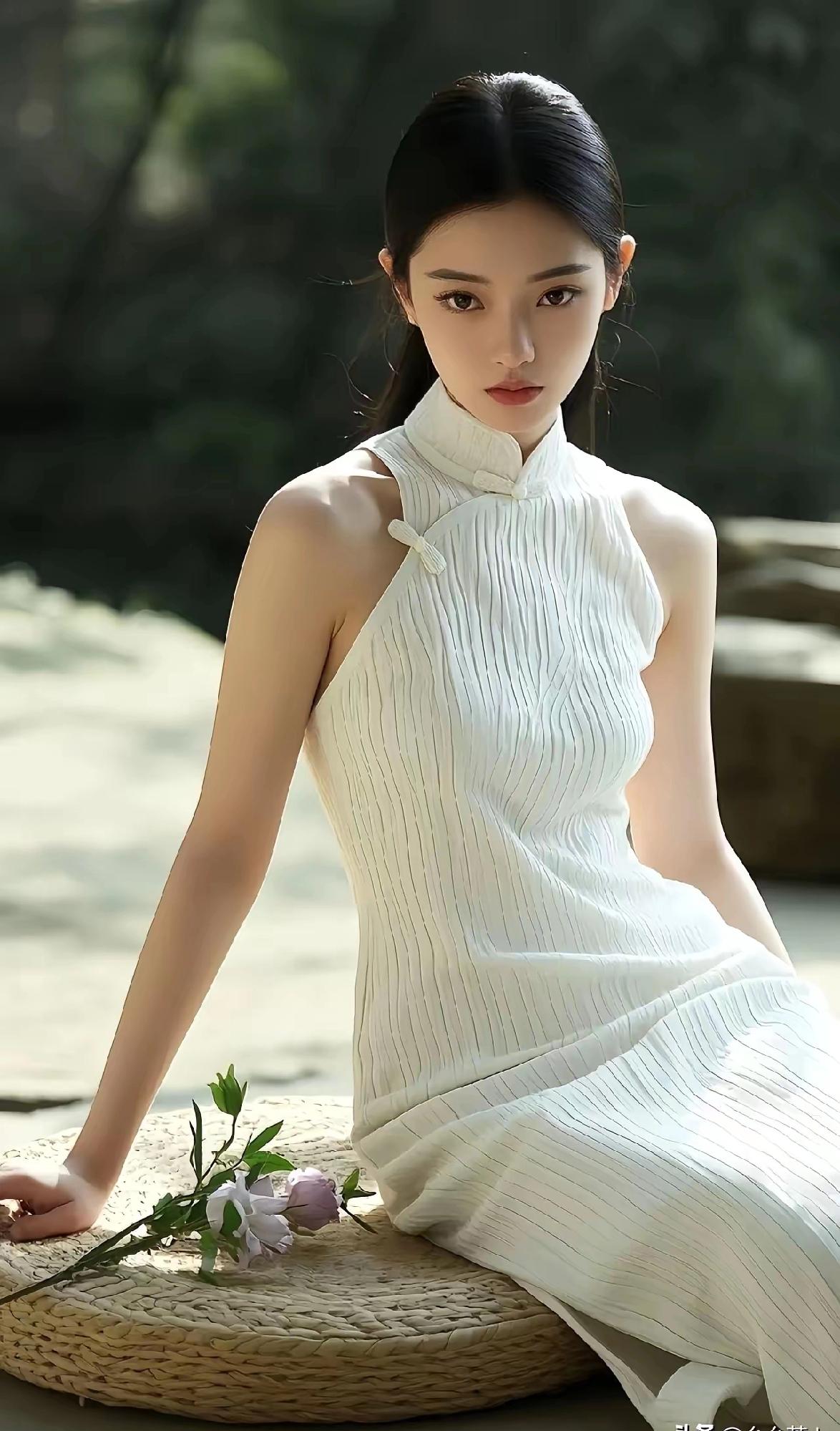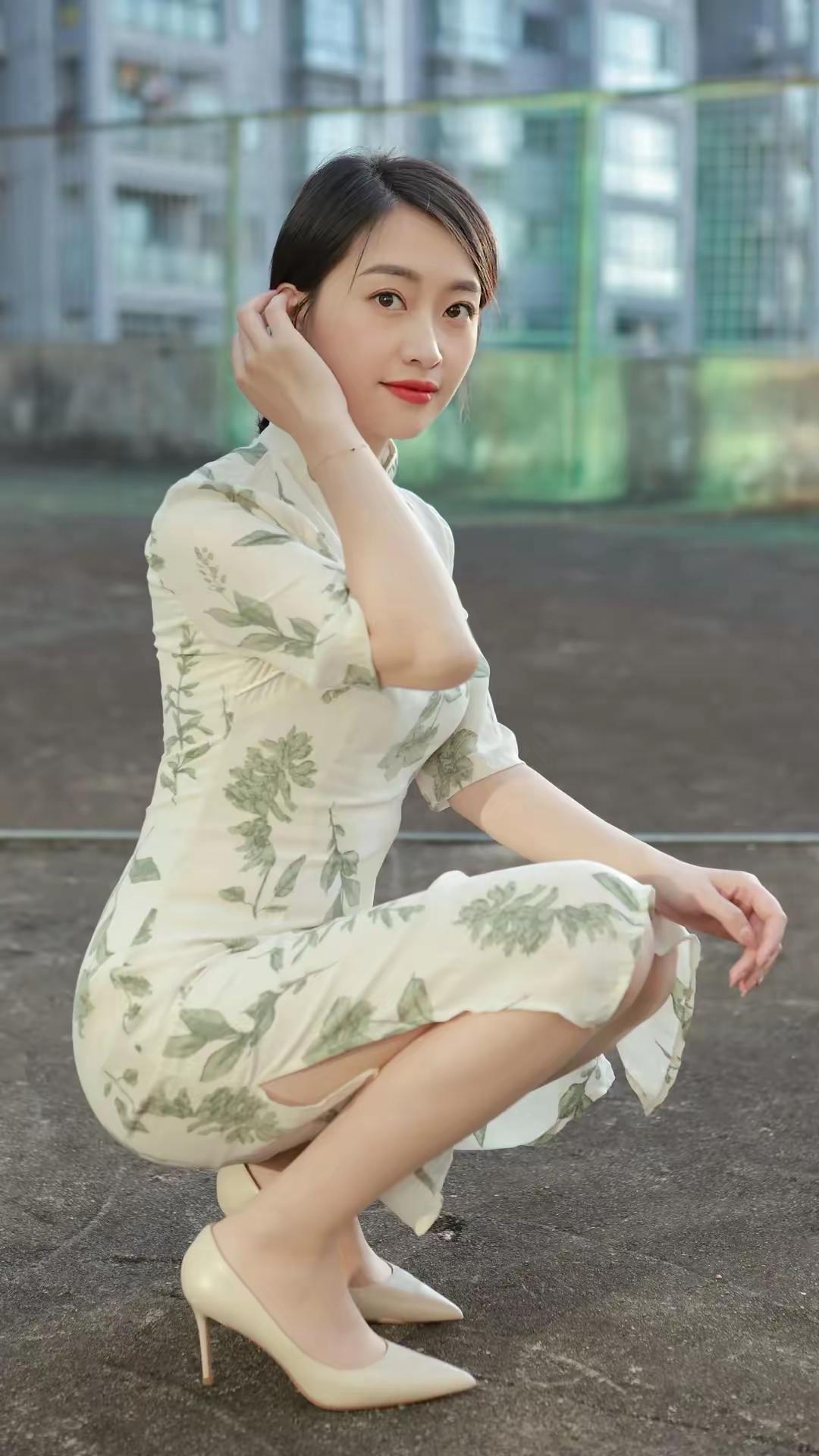 她于江南烟云里轻拢绿纱, 似从敦煌壁画里走出来的飞天。 岁月在多彩的旗袍上跳着碎金的舞, 轻盈的细步踏出朦胧的幻影, 与耳间的翠玉流苏一同婀娜。 转身后, 背胛那片树叶与身影相融, 恍若仙子下凡, 在这古老与现代交织的时光里, 等一场跨越千年的相逢, 每一寸肌理都浸着东方的韵, 每一次抬眸都藏着诗意的留白, 似在说, 原来你也在这里, 共赏这人世间的旧梦新篇。