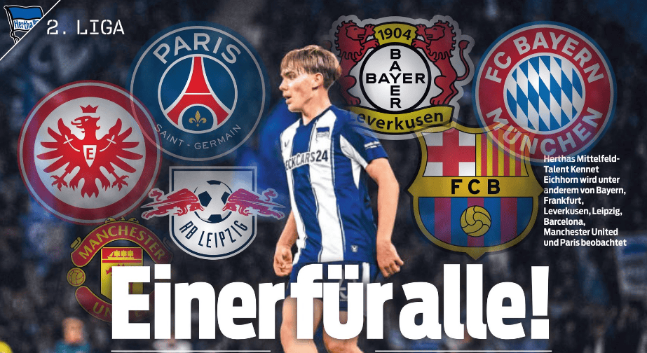 难怪财力雄厚的海外俱乐部也加入了这场争夺战。曼联、利物浦、巴塞罗那和巴黎圣日耳曼的球探已经出现在了柏林赫塔奥林匹克体育场的看台上。皇家马德里、曼城和阿森纳的球探部门也早已将艾希霍恩视为一位值得关注的新星。