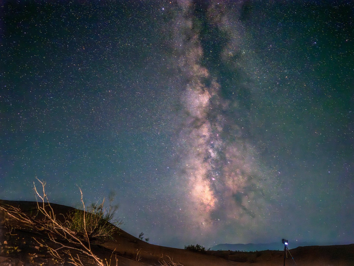 在沙漠看大地星河有多浪漫看到沙漠里的星河,对“寄蜉蝣于天地,渺沧海之一粟,哀吾生之须臾,羡长江之无穷”有了实感,我们渺小的人生,放在大自然是是很微不足道的一件事。