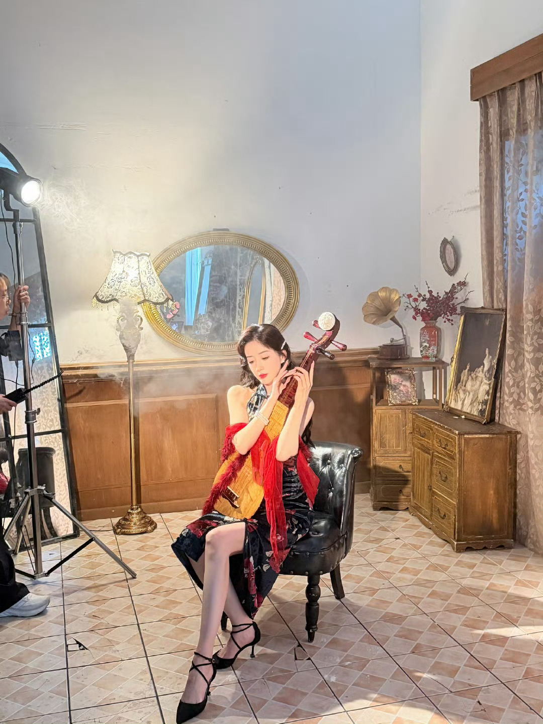 她于江南烟云里轻拢绿纱,似从敦煌壁画里走出来的飞天。岁月在多彩的旗袍上跳着