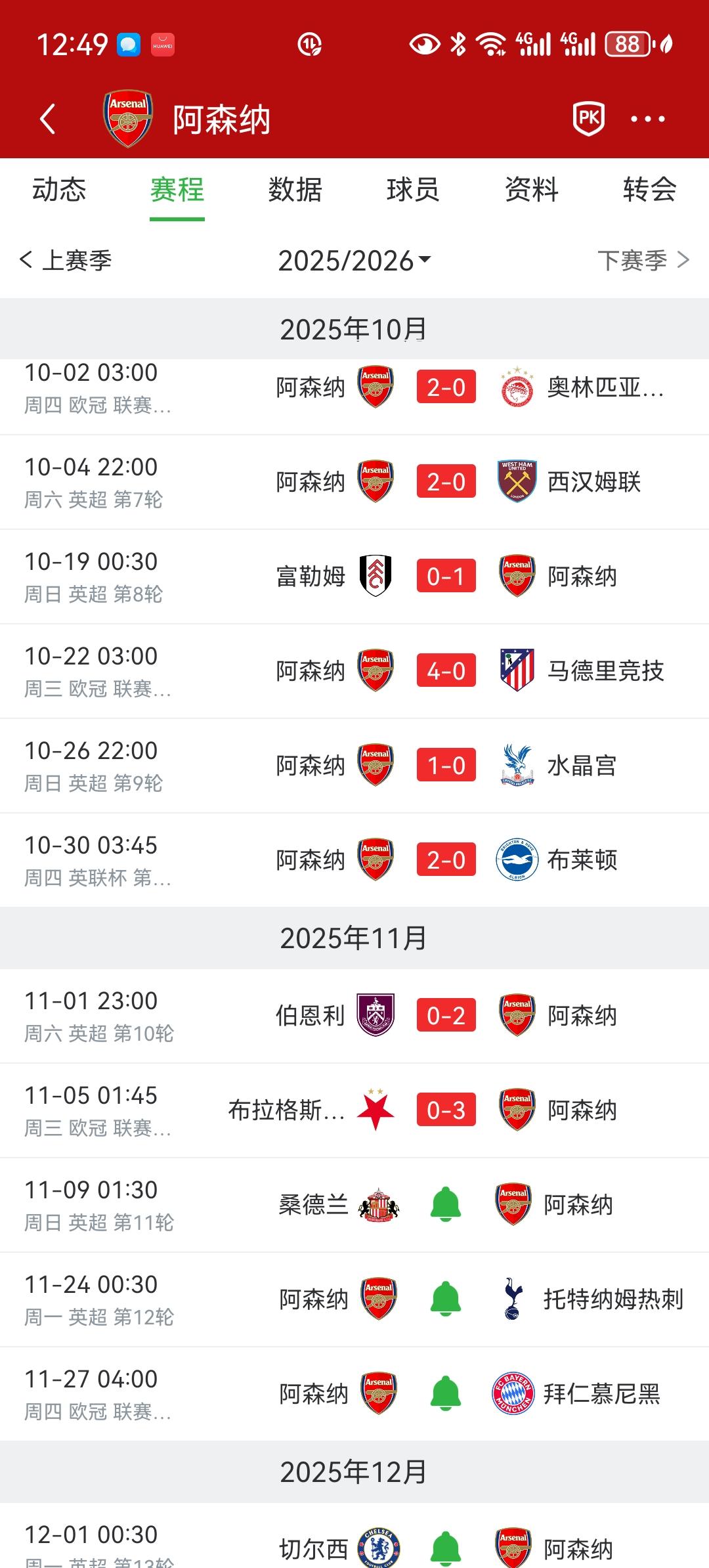 阿森纳已经惊人地连续8场零封对手!这个赛季各项赛事阿森纳总共只丢了3个进球,这真的很离谱!接下来的四场比赛是对阿森纳的考验了,先是对阵大黑马桑德兰,再连续对阵热刺、拜仁和切尔西这几支球队,如果还能保持零失球就牛逼了!