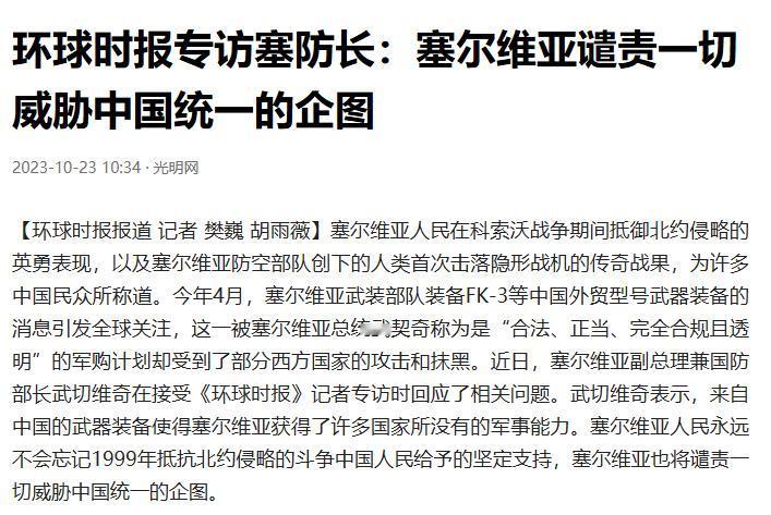 塞尔维亚总统武契奇发布涉华言论! 说白了,要说哪个国家的关系与中国最铁,我觉得