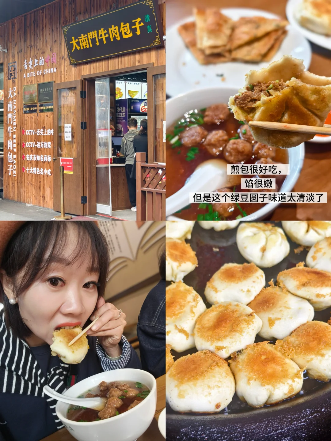 ▫️大南门牛肉包子:煎包+绿豆圆子汤绝配,油饼酥脆,煎饺一般