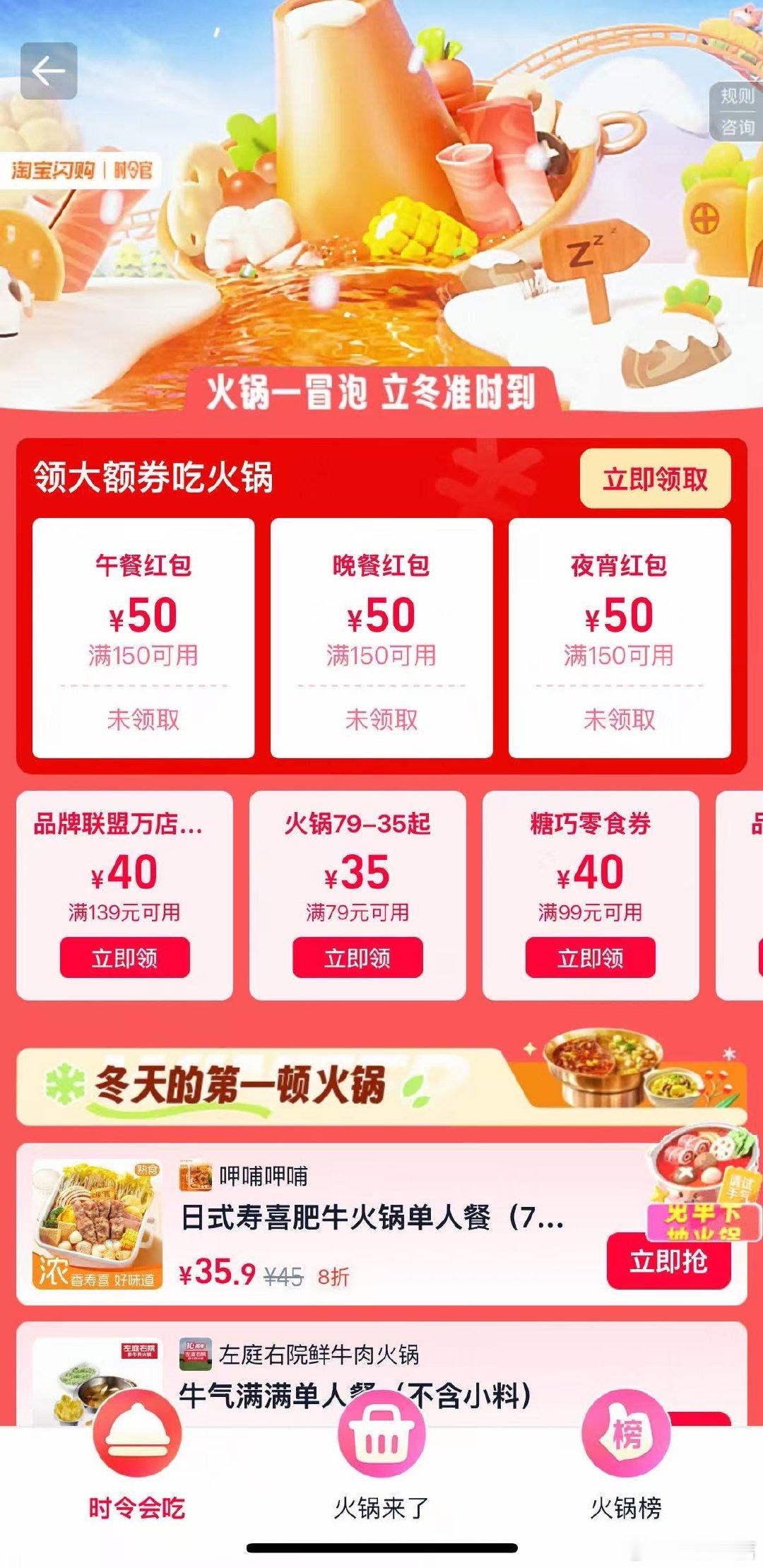 上淘宝闪购吃冬天第一顿火锅立冬组局神器在此!呼朋引伴来我家,火锅我搞定~ 🍑🔍闪购火锅,抢免单、进会场领最高50元红包🧧,速来!