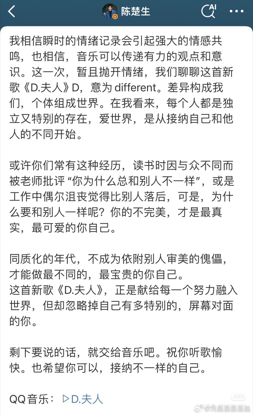 D 夫人就是 different 的谐音,用这首歌告诉那个被骂丑的小女生"不要成为依附别人审美的傀儡,