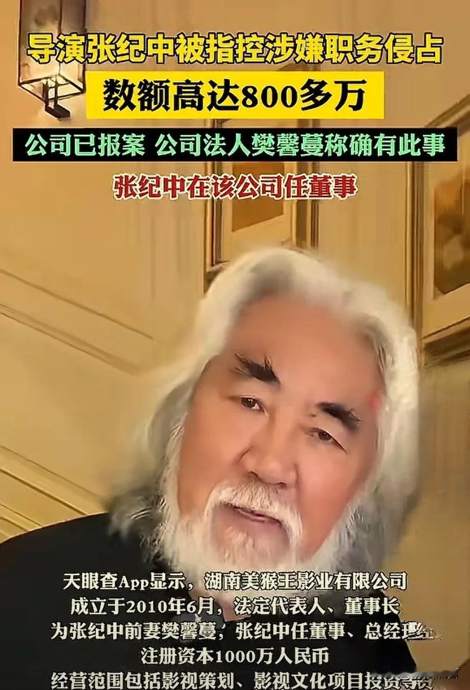 爆炸💥💥新闻啊!著名导演张纪中会犯罪,你相信吗? 作为一个知名导演,不应该作出这样离谱和违法的事,今天被张导演刷屏了,这次热门不应该啊! 张导身为一个告诉董事,反职务侵占罪800多万,对于张来说不是大钱,但是在法律面前已经非常严重了,而且公司法人已经报案,基本上已经是事实了。 所以平时看不出来吧!如果不是因为他的小杜,估计这件事还上不了热门,希望经历这次事件后,好好反省!张纪中