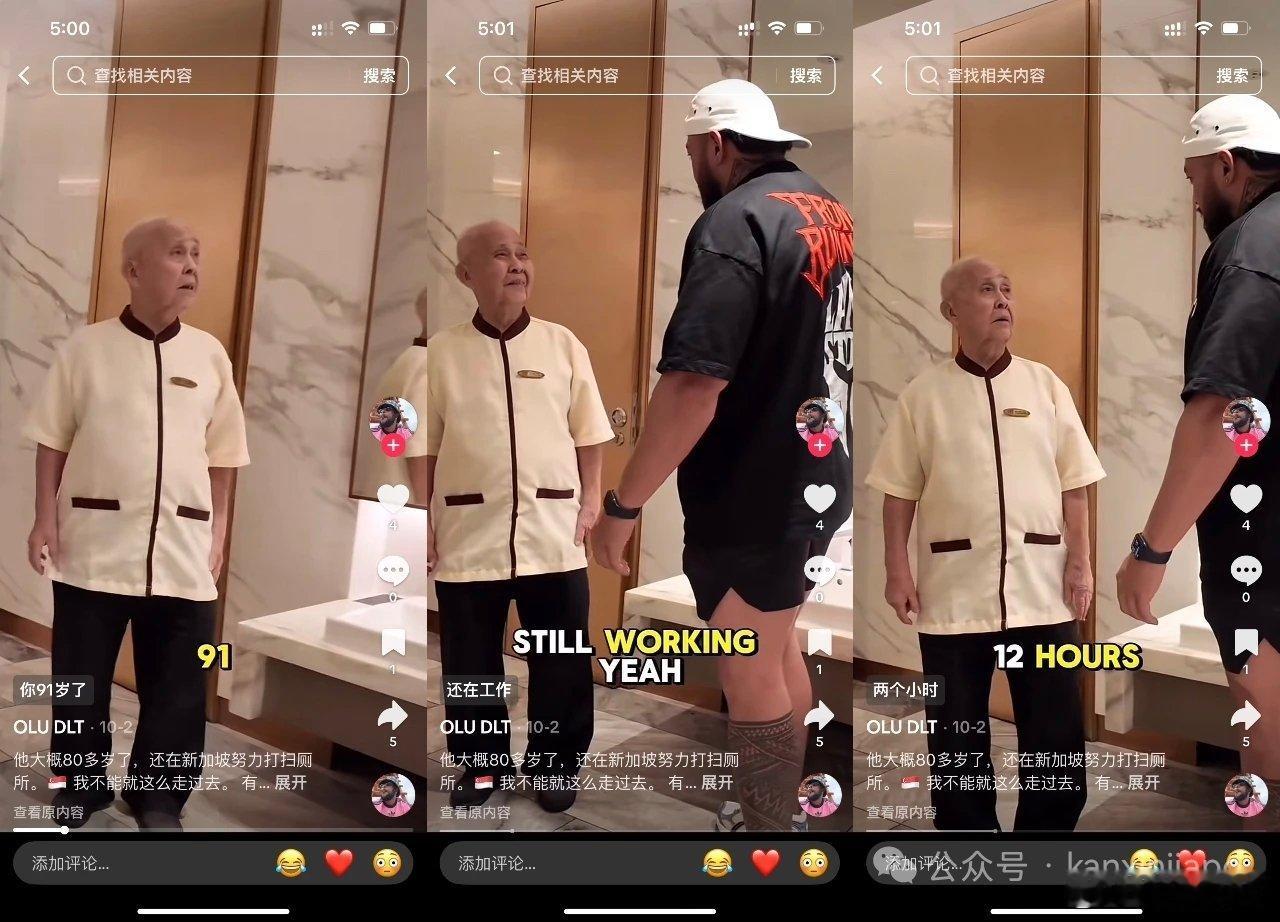 新加坡91岁老人每天工作12小时这位91岁的清洁工,只是新加坡“银发就业”的一个缩影。如果你住在新加坡,你一定常会看到食阁,收碗盘的是行动缓慢的老奶奶老爷爷。根据新加坡人力部最新报告,65岁以上老人就业率在过去二十年里从18.9%上升到31.4%;而65至69岁的群体中,有近一半(49.1%)仍在工作。换句话说,每两位65岁老人中,就有一位仍在职场上活跃。
