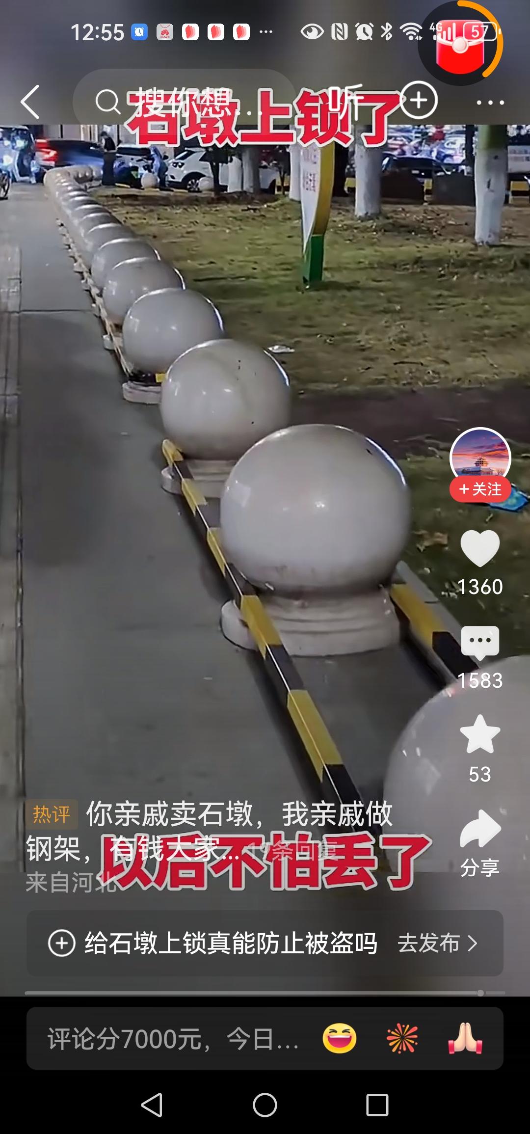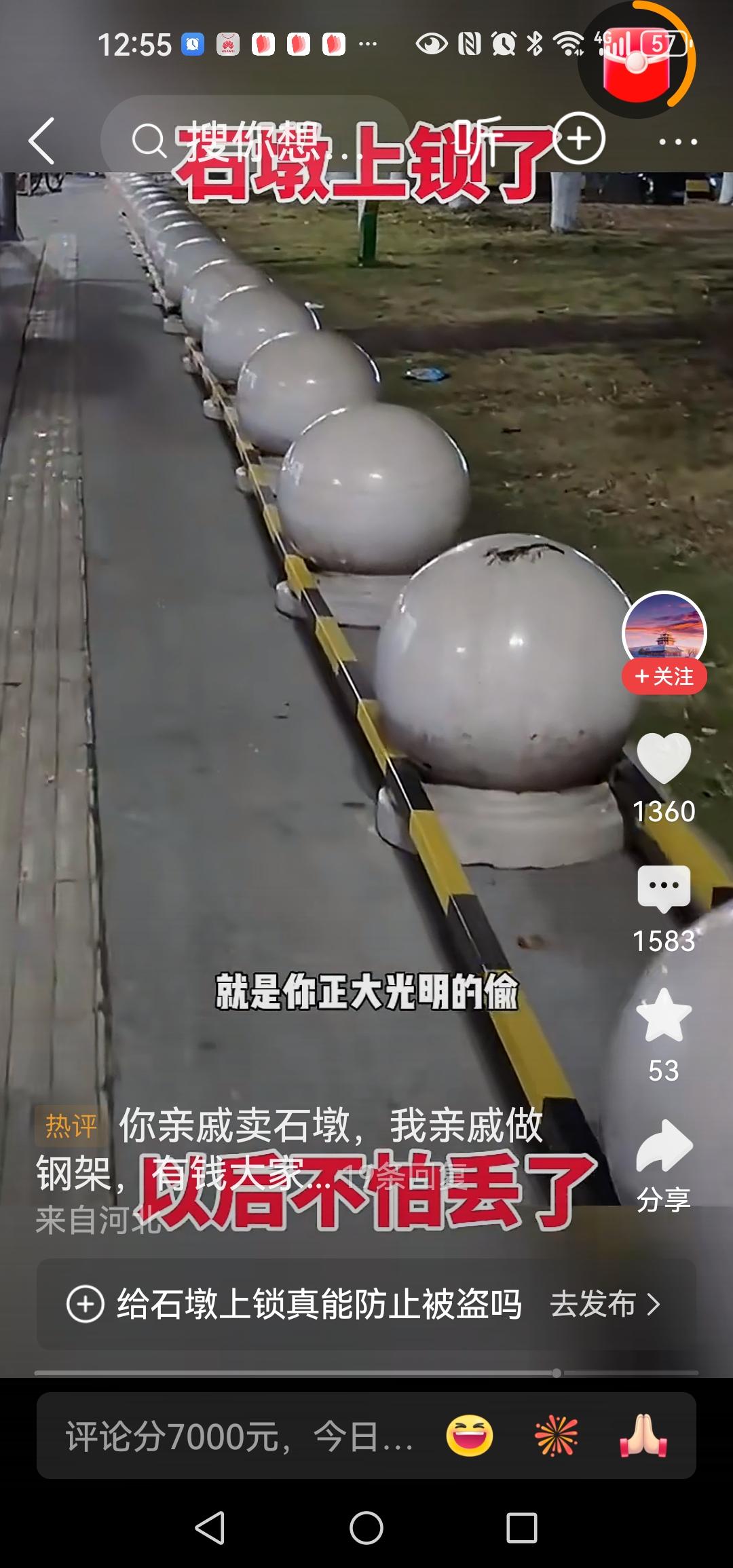 天呀天呀,这什么世道,给圆石墩子上锁,谁想出的点子?有人偷吗?偷不偷估且不说了,可万一有人走或跑的时候被绊倒了,谁赔钱赔命? 而且,这地方你们管理的非要安个冷冰冰的石墩子吗?安装一排长木登子不更利民吗?为人民服务多好。
