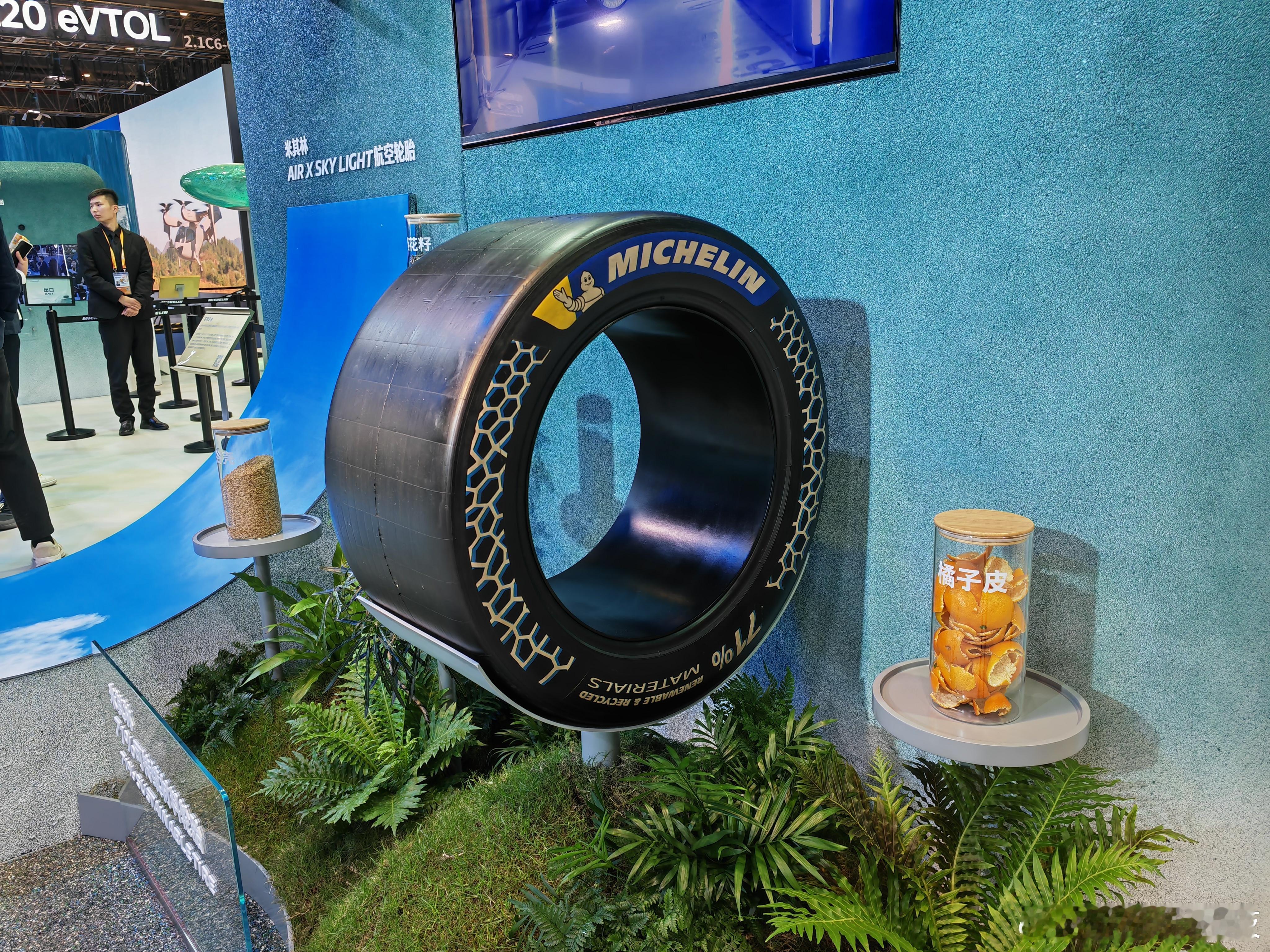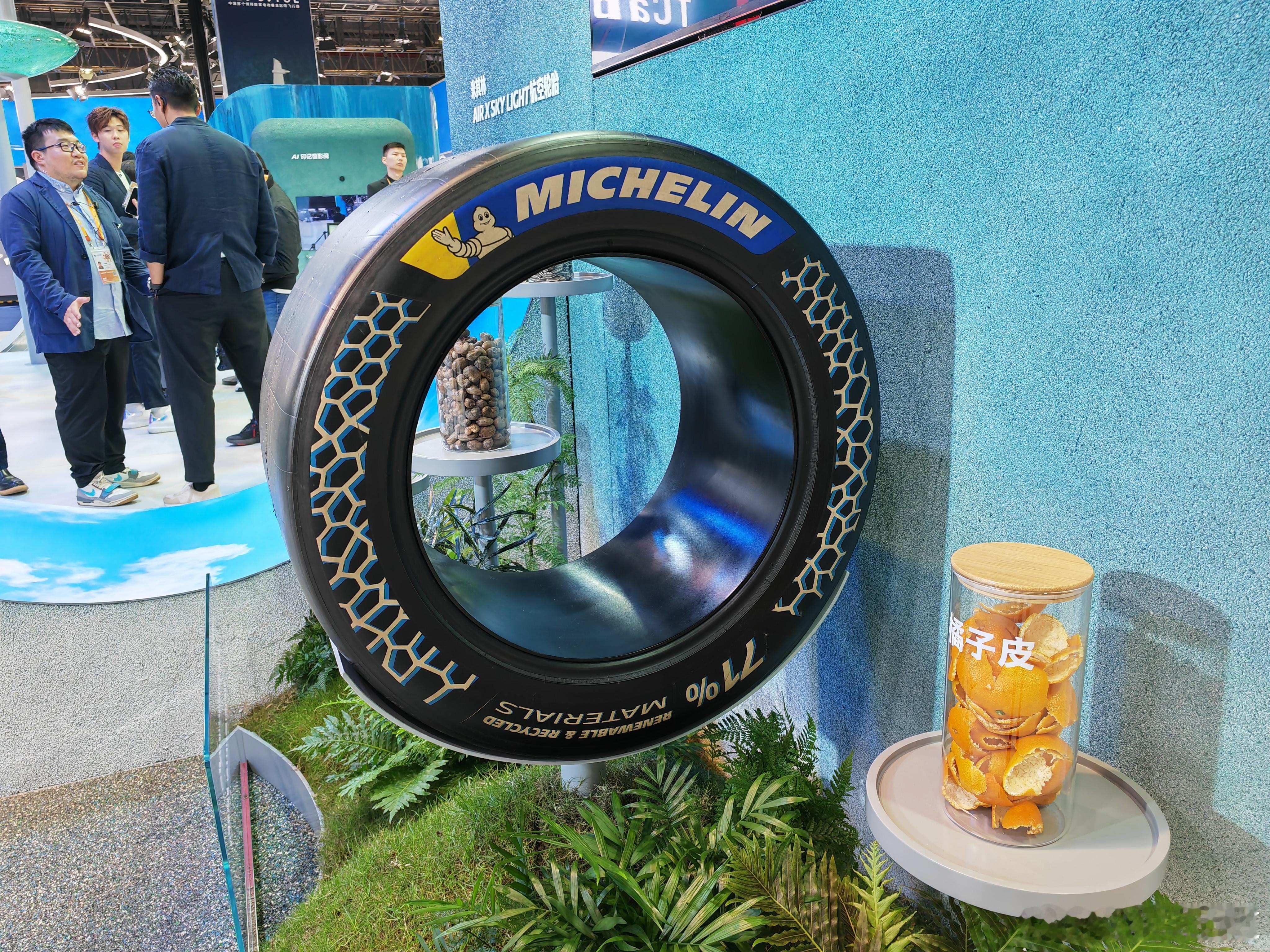 2021年米其林在进博会展示的46%可持续材料轮胎,时隔四年,就到了71%可持续材料了,有点儿厉害。