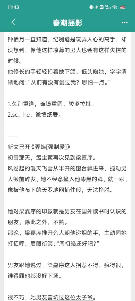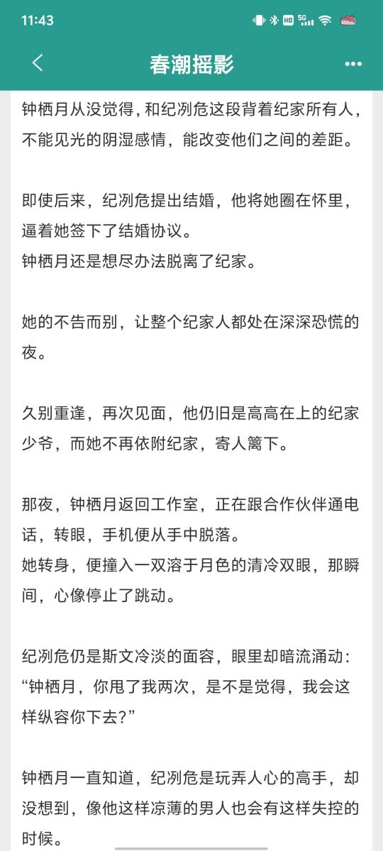 《春潮摇影》by即枫 刚完结的文,一共80章 寄人篱下乖乖女清冷腹黑贵公子 现言伪🦴久别重逢,破镜重圆 男主有病只有女主能治!一整个他超爱,能做到非女主不可!