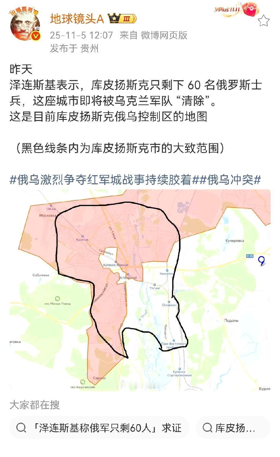 快讯!快讯!。 俄罗斯国防部突然宣布了。 11月5日的通报里,俄方点到库皮扬斯克和红军城,称乌军在两地被困,活路只剩“自愿投降”。这是俄方口径,需要更多现场证据。 同一通报给出“乌军一昼夜损失1460人”的数字,目前没有第三方确认。类似数字在战场上常出现偏差,外界一般会结合影像和单位名单核对。 过去一天的打击方向,俄方列出能源设施、交通线、无人机组装车间、弹药库,以及142个临时驻扎点。目标覆盖面广,指向的是支撑前线的后勤链路。 当天乌能源部公布从早7点到晚21点的限电安排,涉及苏梅州、切尔尼戈夫州、顿涅茨克等多地。时间与范围和俄方“打能源”说法对应,但具体损害程度仍需排查。 泽连斯基在库皮扬斯克的说法是“清理不到60名俄方人员”。俄防部随即反驳,指其要么不了解前线,要么刻意遮掩。两边话语冲突明显,关键还得看地面画面。 红军城的现场信息分化更强。亲俄信源多称“已拿下”,亲乌口径强调“俄军损失重、进展有限”,中立观察则把焦点放在补给线和道路控制上。 德国评论员罗普克称“俄方已控约85%区域”,澳大利亚AMK Mapping说“战斗接近尾声”。两者都非官方通报,属于分析判断,仍需卫星图、街区标记作证。 如果红军城与库皮扬斯克同步失守,乌方在东北方向的防线会承压,援助信心也会受到影响。这也是双方在话术上紧绷的直接原因。 从时间线未来一周可能出现更清晰的地面情况。俄方不排除发布“完全控制”的消息,但是否成立,要看现场坐标、建筑物标识与部队移动轨迹。 战场上更关键的,是交通线、补给点、能源修复速度。这几项的变化,直接决定前线能不能稳定,而不是单靠当天的伤亡数字。 对照近几个月的画面,双方在无人机、炮火与小股渗透上持续拉锯。一座城的人口密度、街区结构和工业区分布,都会显著影响推进节奏。 库皮扬斯克与红军城的名字频繁出现,说明它们就是当前的焦点位。谁能稳住路口、桥位和仓库,谁就能在随后几天占到主动。 实地态势未定时,避免被单条消息带着跑,是更稳的做法。把时间、地点、单位、影像放在一起比对,更可靠。 这场下棋不会靠结束。看线、看点、看人,等到官方和第三方证据同向,那才是定论。