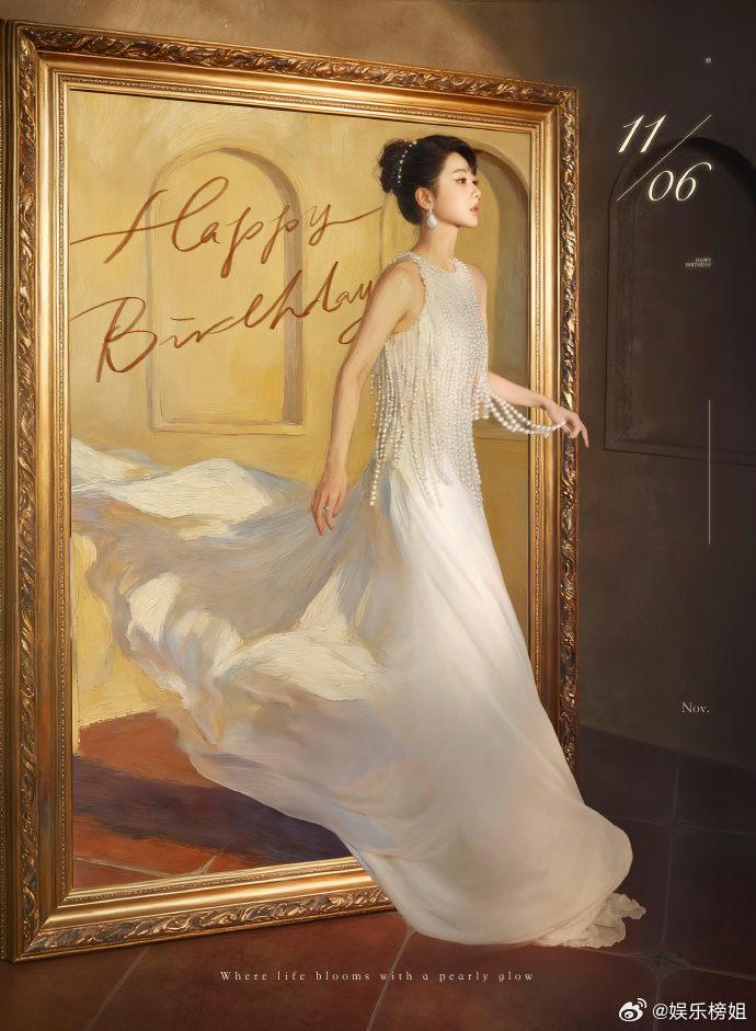 杨紫生日李现张一山卡点祝福画中走来的美人,如珍珠般绽放光芒11.6日,杨紫33岁