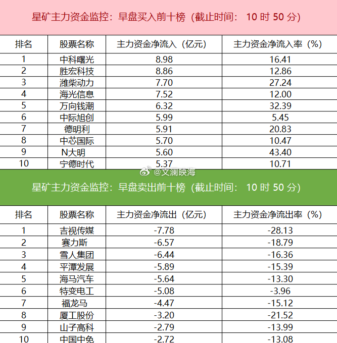 今日早盘主力资金净流入电子、半导体、非银金融等板块,净流出文化传媒、医药、计算机等板块。其中,电子板块净流入规模居首,金额超43亿元。个股方面,中科曙光大涨,主力资金净买入超8亿元,位列榜首;胜宏科技、潍柴动力、海光信息主力资金净流入幅度居前。流出方面,吉视传媒遭净卖出超7亿元,赛力斯、雪人集团、平潭发展等个股资金净流出额居前。财经今日看盘理财