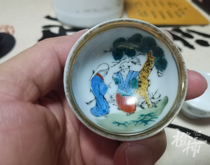 除了蜻蜓画片和高砂夫妇的酒杯,陈先生意外发现,其中一只杯子做工和绘画非常特别!