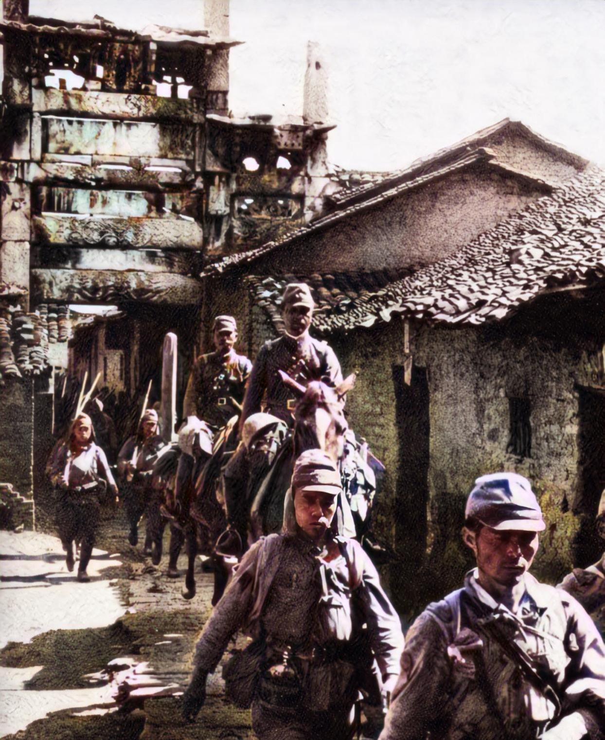1938年9月6日,武穴沦陷,这是日军进入武穴城的场景。1938年8月,日军沿长
