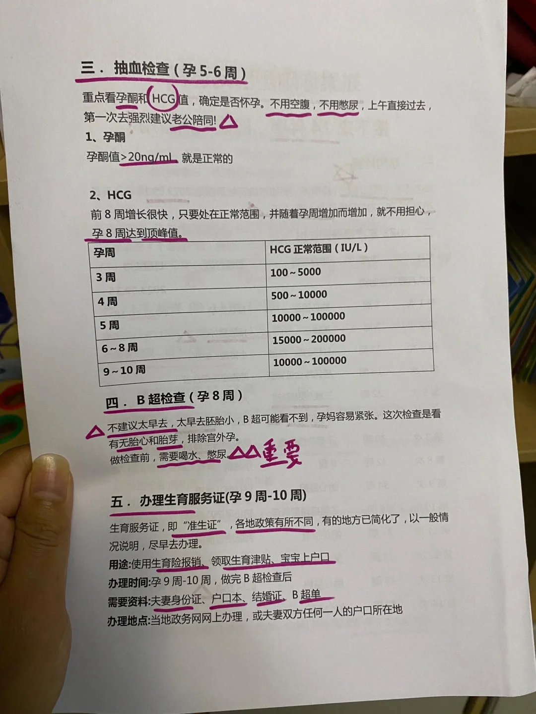 🌈之前有刷到帖子说如果在家刚测出双杠就去🏥很有可能会因为孕周太小,检测不出来,所以我就在家每天用验孕棒自己测,验孕棒颜色不变说明宝宝很好哦,如果验孕棒每天颜色越变越浅就要留意马上去医院,因为很有可能宝宝会sheng 化。当时我是第7周才去🏥,挂了号直接跟👩⚕️说在家测显示怀孕了,👩⚕️问了末次月经算了下日子就直接给我开了抽血单,查孕酮和hcg以及叶酸代谢,看了孕酮和hcg翻倍数据很好,根据末次月经推算宝宝周期,马上开了 b超单,当时我做的是阴超所以不需要憋尿,第一次怀孕什么都不懂,坐在大厅排队检查的时候超级担心是宫外孕,后来检查的说宝宝发育的很好哦,已经有胎芽胎心了,宫内孕一切正常!哇塞,超级开心的!笑的我合不拢嘴,还好戴了口罩,哈哈!