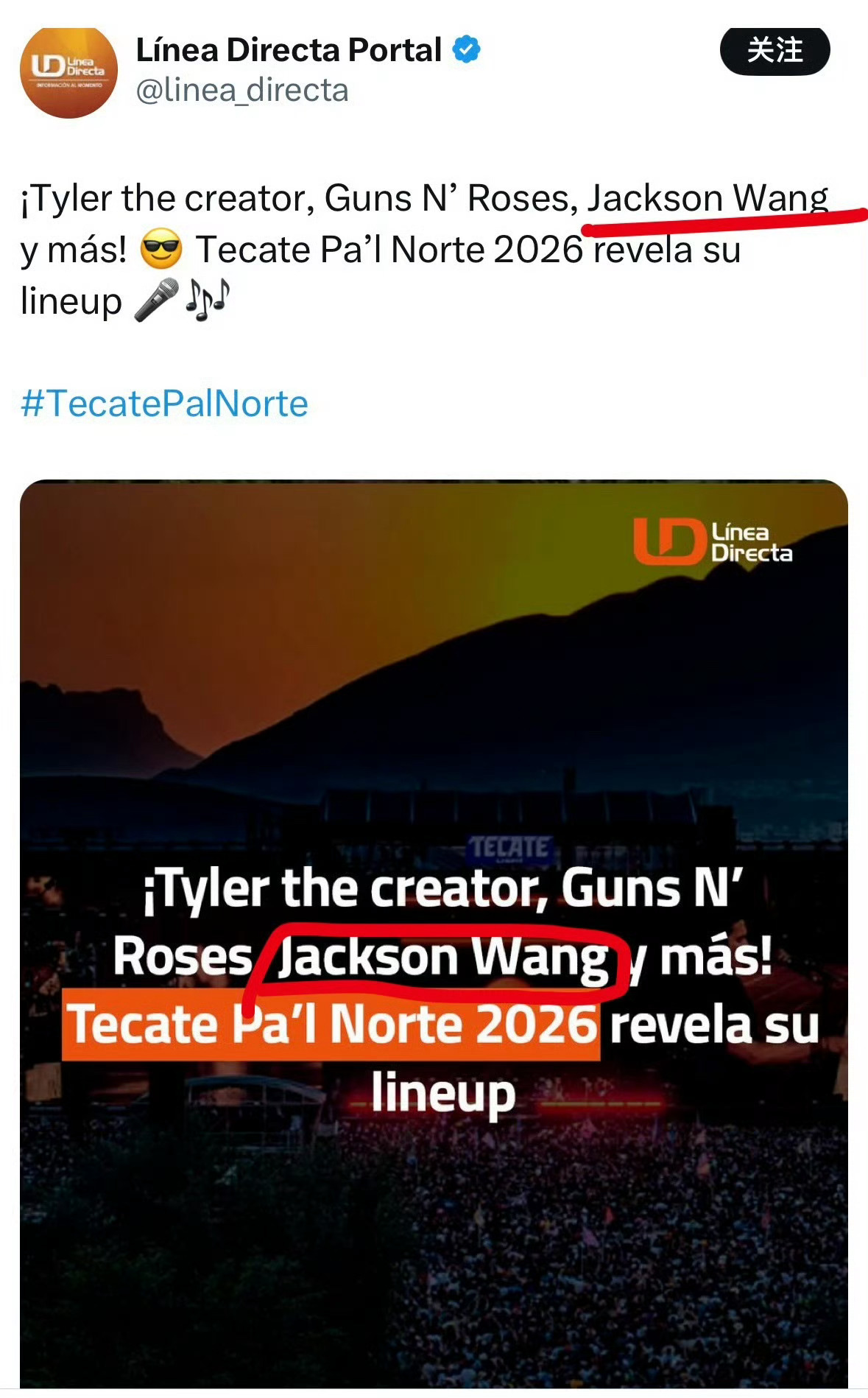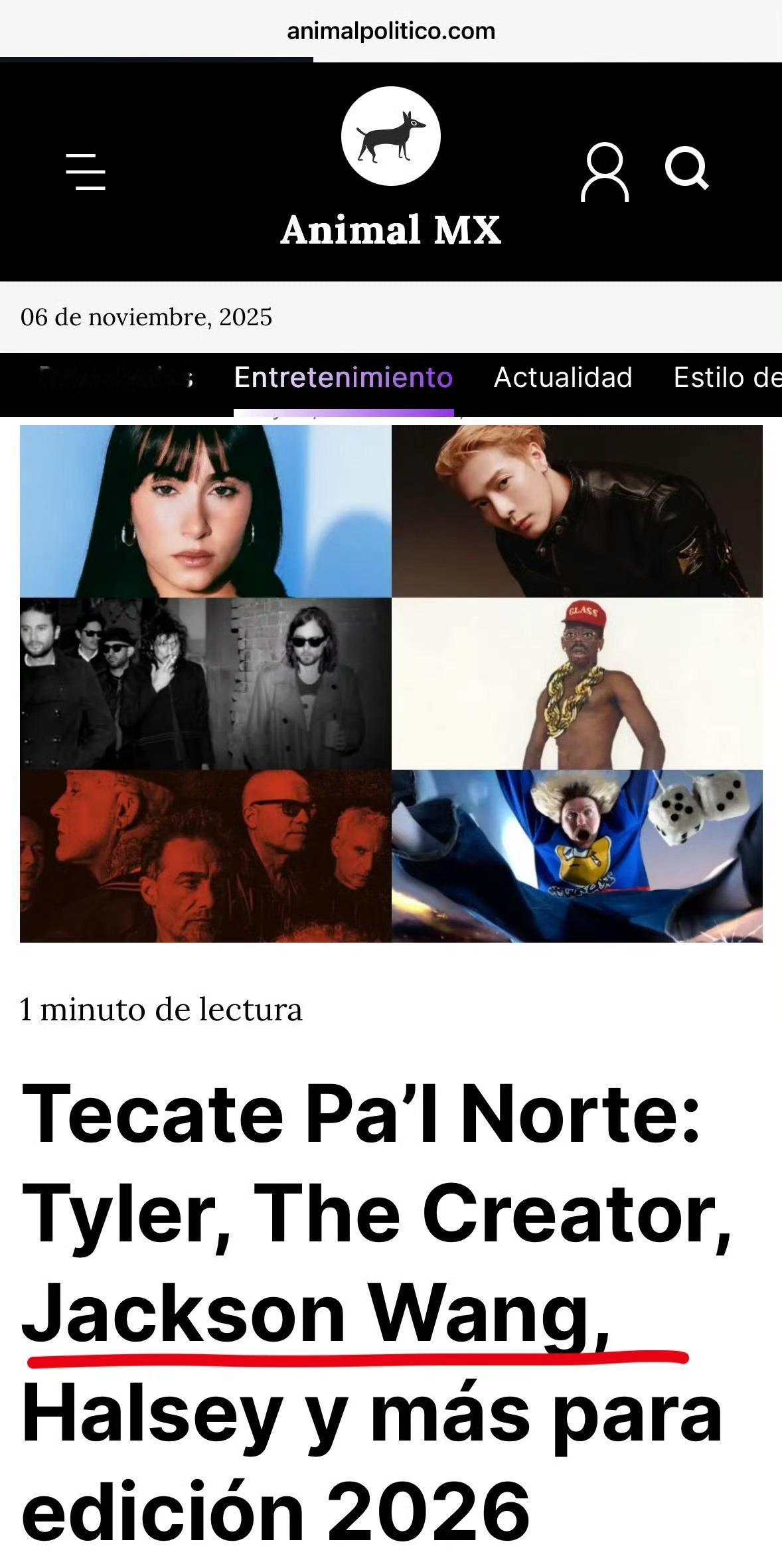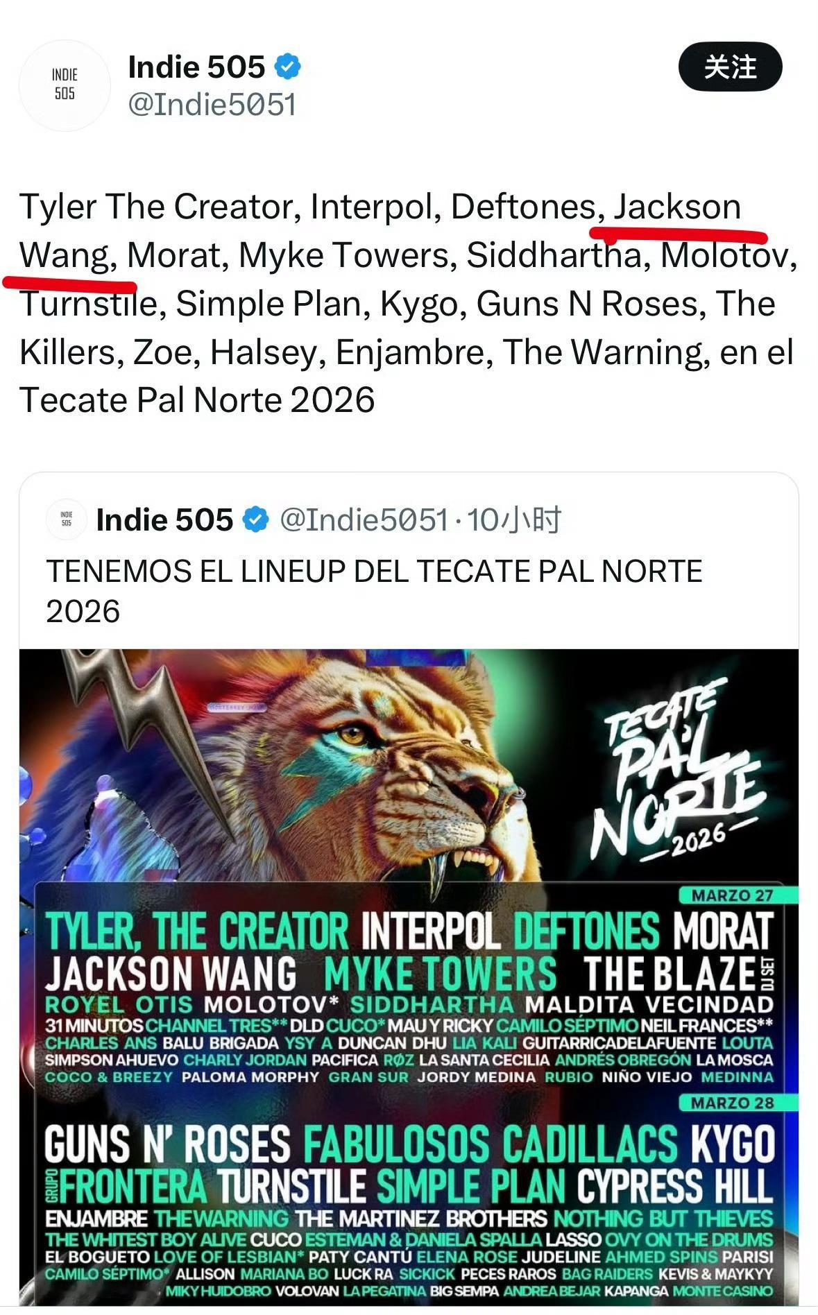 王嘉尔明年将参加墨西哥乃至整个拉丁美洲最受欢迎、规模最大的音乐节之一,2025年的三天音乐节共吸引了约 30 万人参加,王嘉尔将于3月27日作为领衔歌手,以下是国外部分媒体报道,嘉尔哥牛的🐮