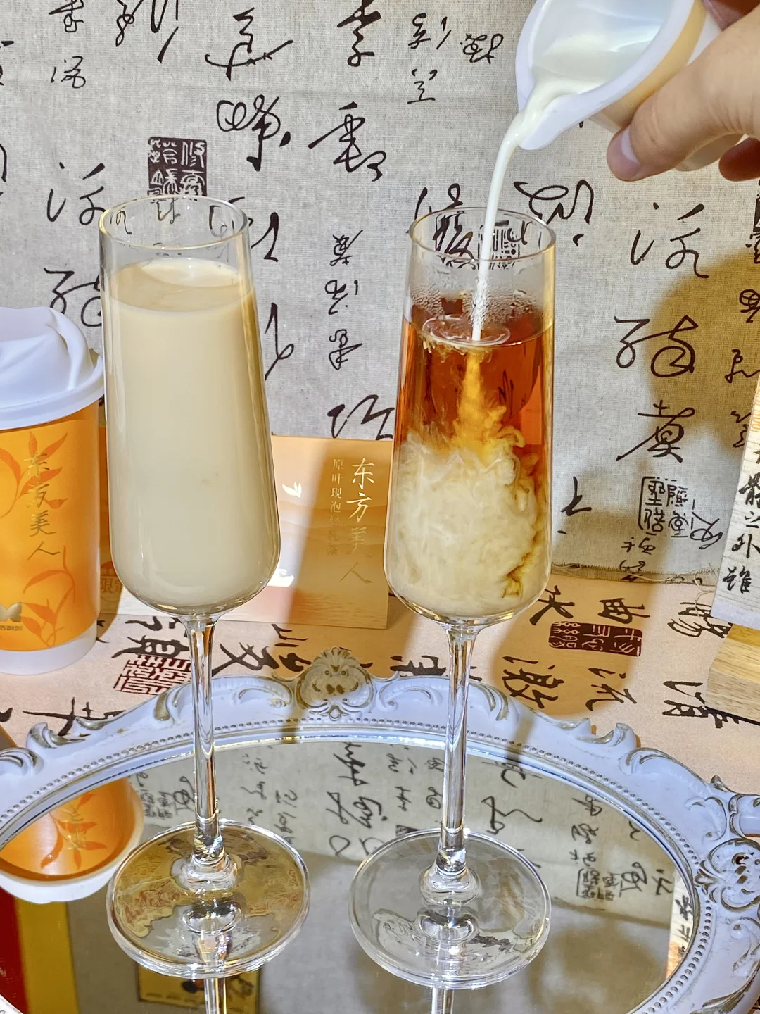谁懂啊!香飘飘这次莎莎生日限定款 直接戳中我心巴 茶底居然是茶中“爱马仕”——中国台湾新竹的 东方美人茶! 还是一年一季,手采一芽二叶,产量真的很稀缺 而且要被小绿叶蝉叮咬过才有的独特蜜香+熟果香 6斤鲜叶才出1斤干茶,诚意拉满! 茶汤像琥珀一样透亮, 能品到花香、熟果香以及蜜香 加奶后更是丝滑到犯规 倒香槟杯里喝出万元手冲的高定感! 0香精0植脂末0反式脂肪酸, 还能自由控甜, 减脂期喝也没负担~ 礼盒里还有莎莎定制杯身、陶瓷茶托+透卡周边,追星人狂喜!