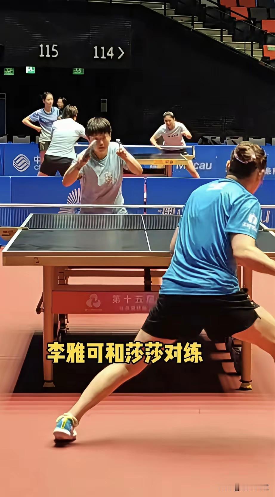 11月6日 果然是北京河北一家亲, 孙颖莎居然和李雅可对练起来。 上届全运会, 北京与河北打成了2:2, 结果莎莎代表河北队 3:0战胜了北京队李雅可。 气的李雅可不理莎莎了, 买了两支冰糕才哄好, 不过,雅可大气, 今天又来陪莎莎练球了![呲牙]