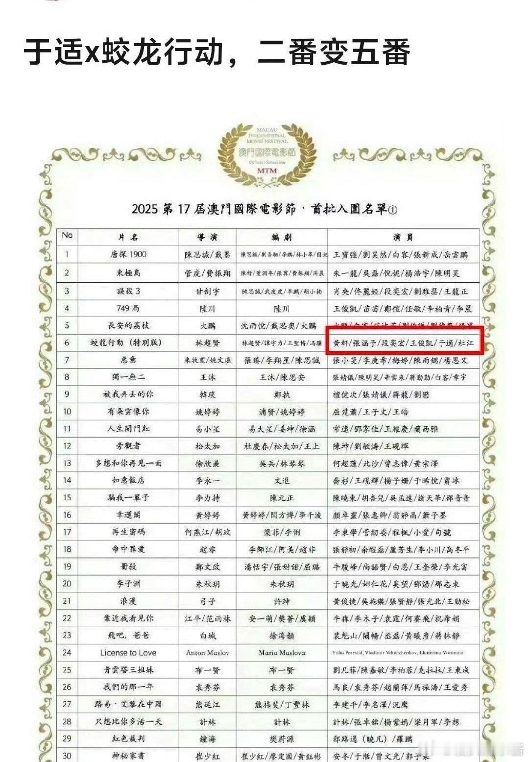 《蛟龙行动》原定二番于适,是因为扑了变成五番了吗