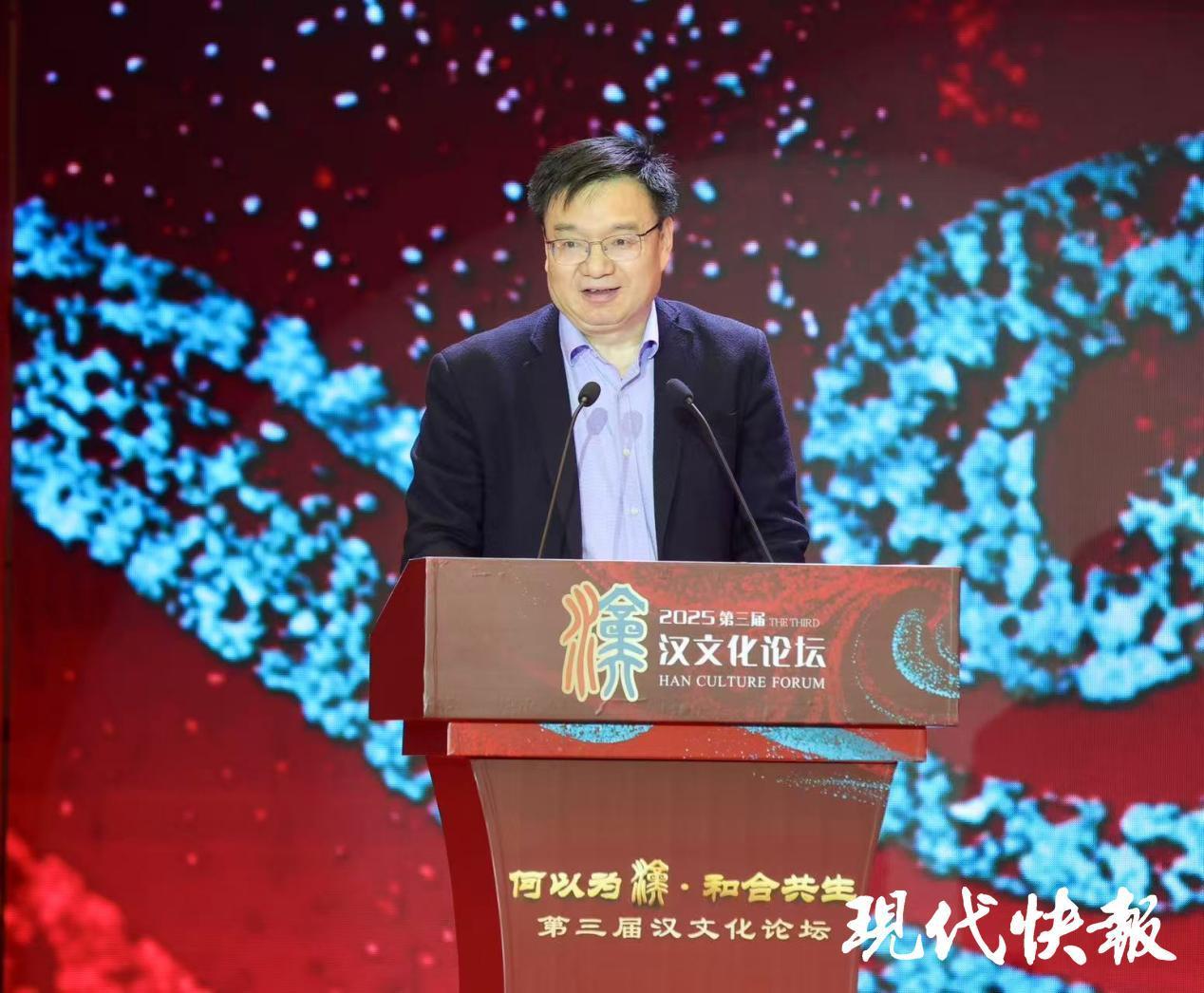 徐缨在致辞中说,本届汉文化论坛以“何以为汉·和合共生”为主题,聚焦数智传播、文明互鉴、文博考古、文脉传承等重要议题,既是深入学习贯彻党的二十届四中全会精神的具体行动,也是江苏打造习近平文化思想生动实践地的重要举措。江苏将以举办本次论坛为契机,持续深化两汉文化研究,大力推动文化传承发展,坚守根脉魂脉,推进自信自强,担当“探索新经验”的使命,让文化创新创造活力全面激发、竞相涌流。