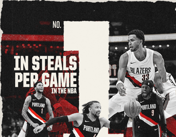 本场比赛,开拓者全队贡献8次抢断,目前场均11.6次抢断高居联盟第一。