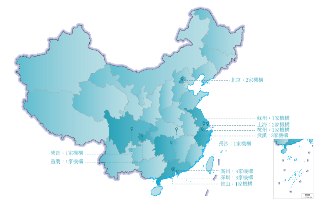 截至最后实际可行日期,公司在中国各地拥有及经营19家医疗服务机构,包括17家诊所和两家医院,覆盖中国十一个城市,包括深圳、广州、北京、成都、苏州、长沙、上海、重庆、杭州和武汉等中国经济最发达的城市。此外,公司还在新加坡及马来西亚分别经营了4家及1家的全科诊所。