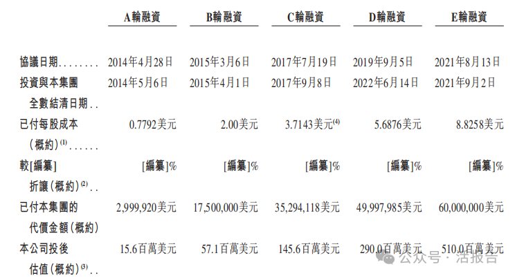 公司历经5轮融资,E轮融资后,公司投后估值是5.1亿美元。